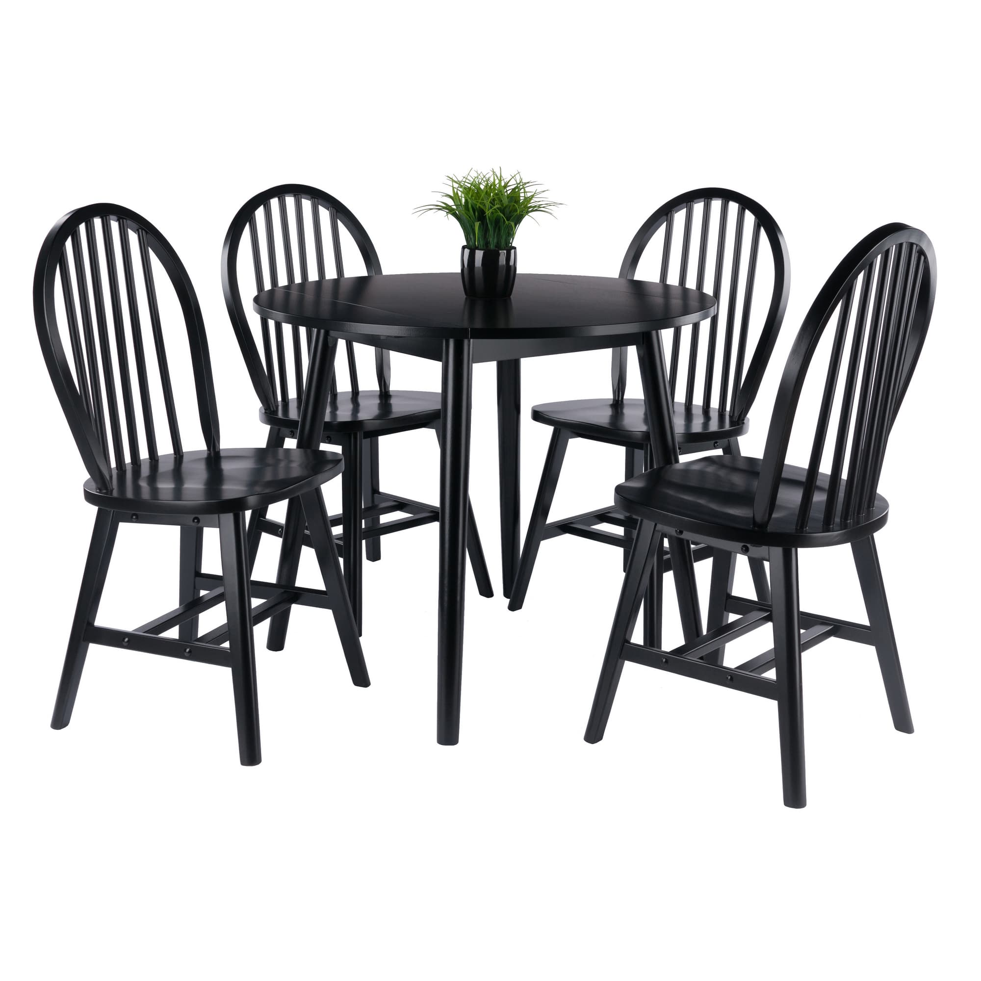 Moreno 5-Pc Set, Drop Leaf Table with Windsor Chairs, Black