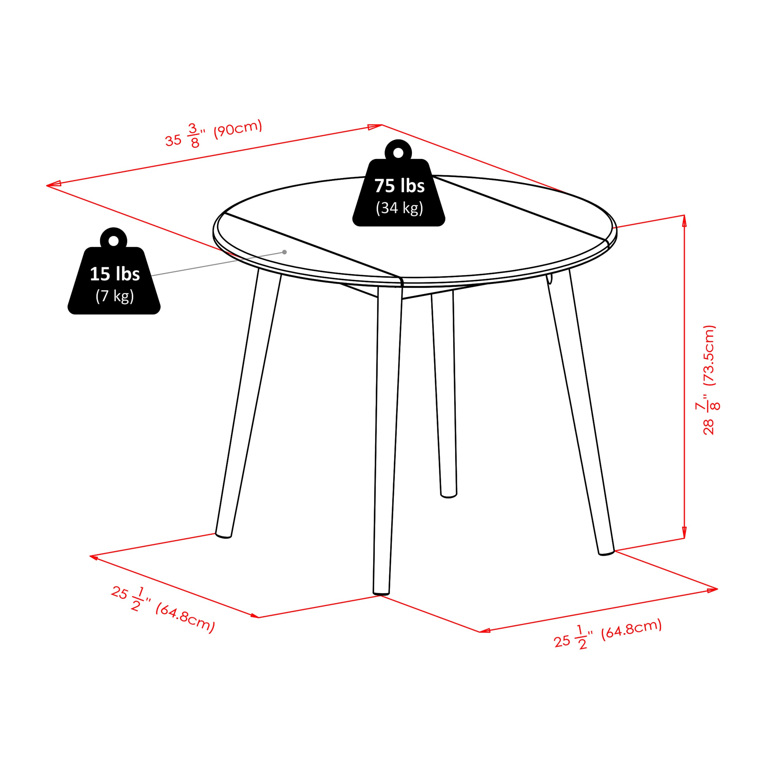 - Dimensions (W x D x H): Table - 35.5 x 35.5 x 29 inchesChair - 18 x 20.6 x 36.8 inches