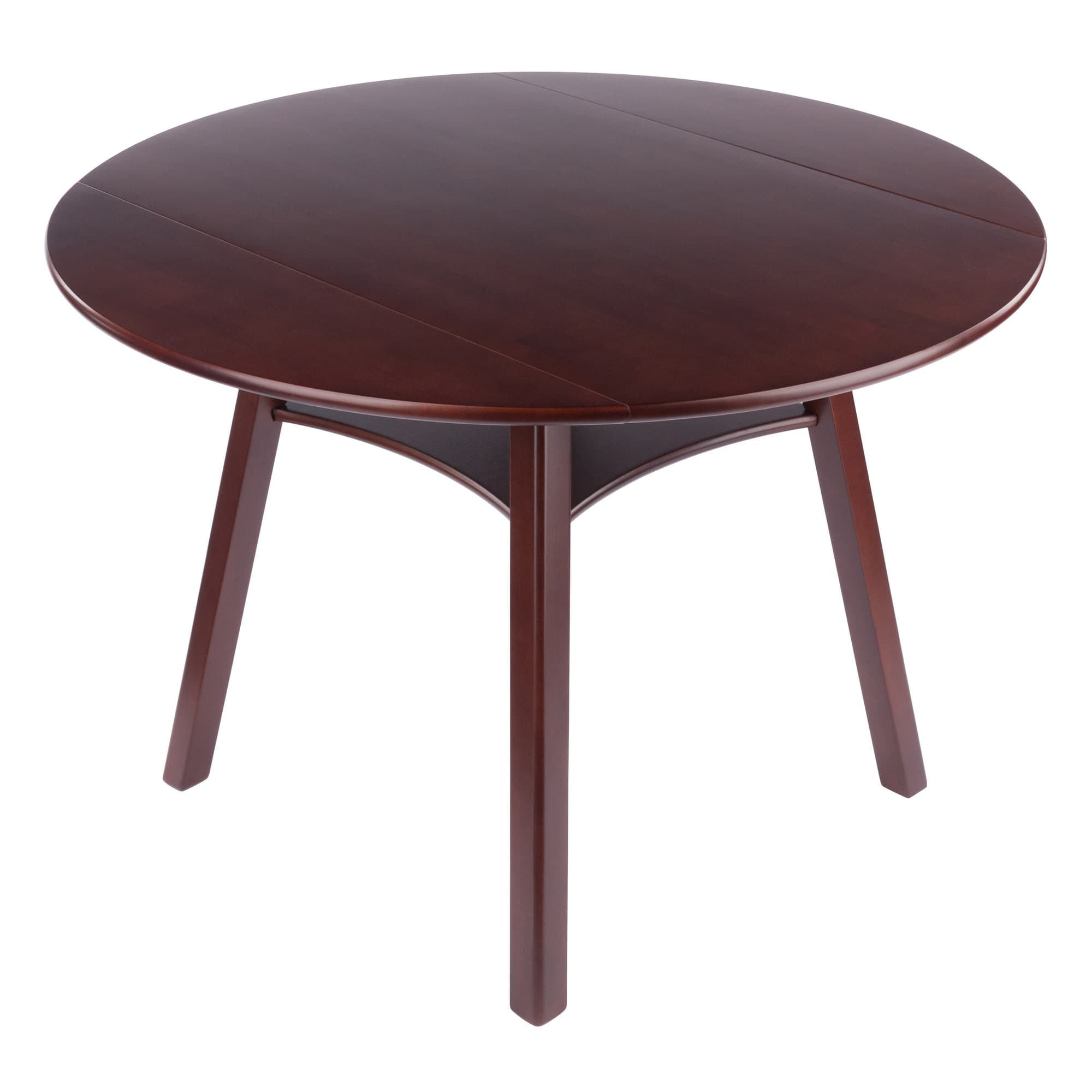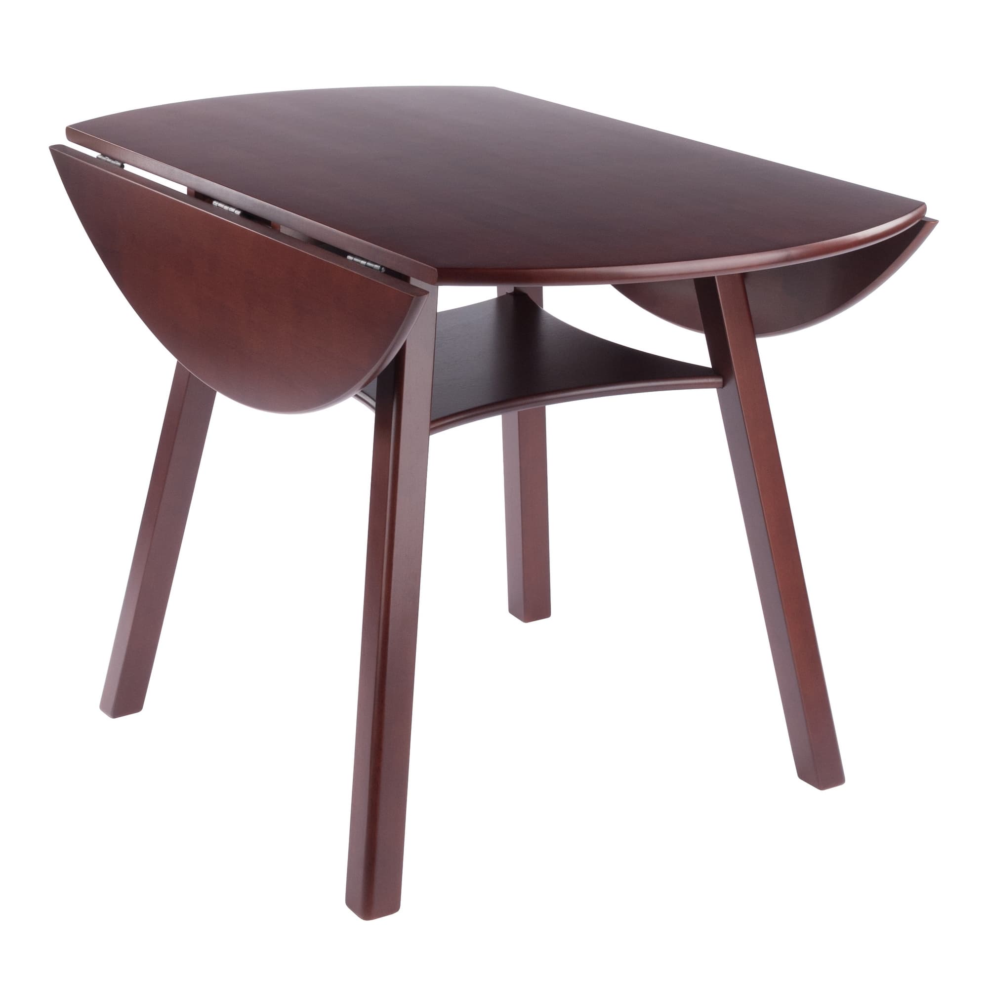 - Round, double drop leaf dining table with shelf