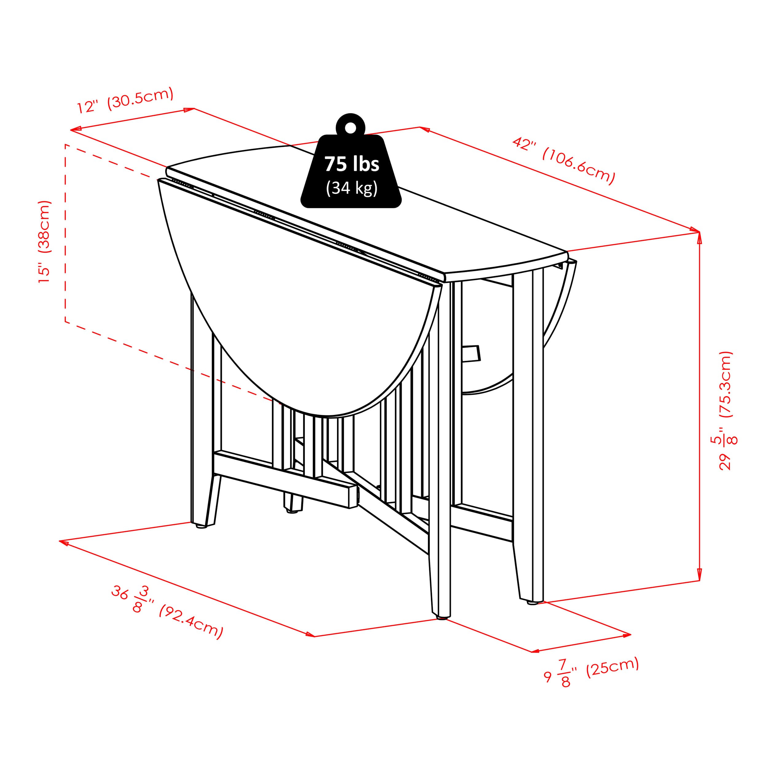 - Table sides fold and open for space-efficient use. Perfect for small rooms.
