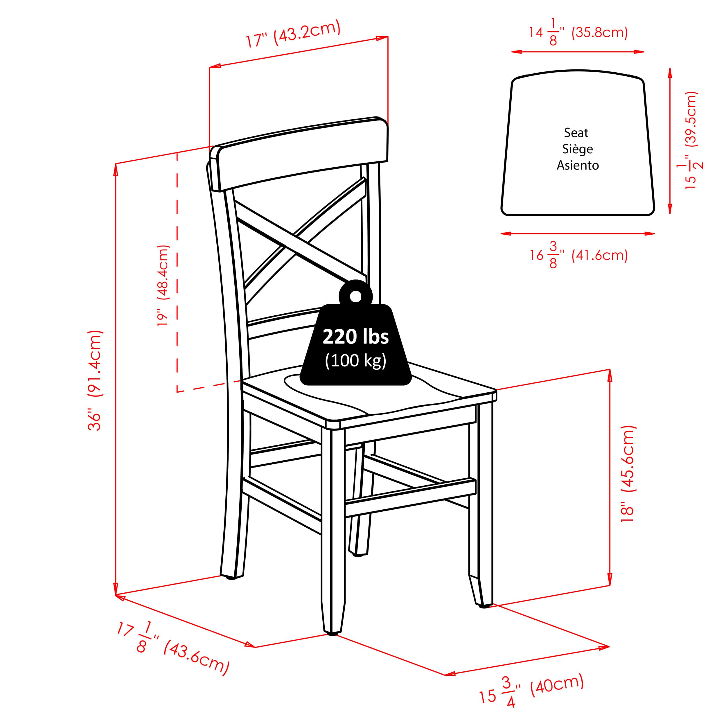 - Chairs are well-constructed from solid wood with cross bars on all 4 sides for maximum stability
