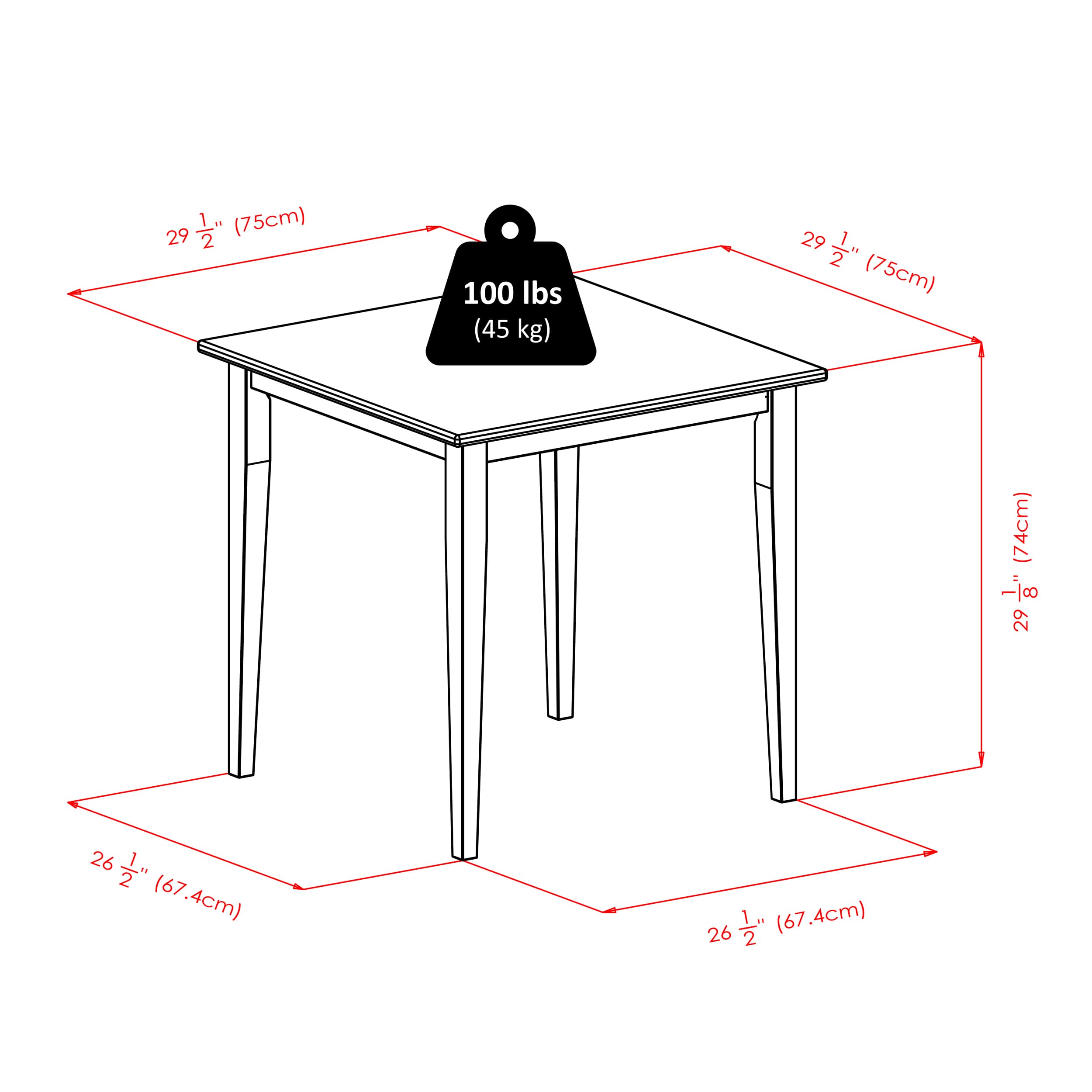 - Dimensions (W x D x H): Table - 29.6 x 29.6 x 29.2 inchesChair - 16.6 x 20.5 x 34.7 inches