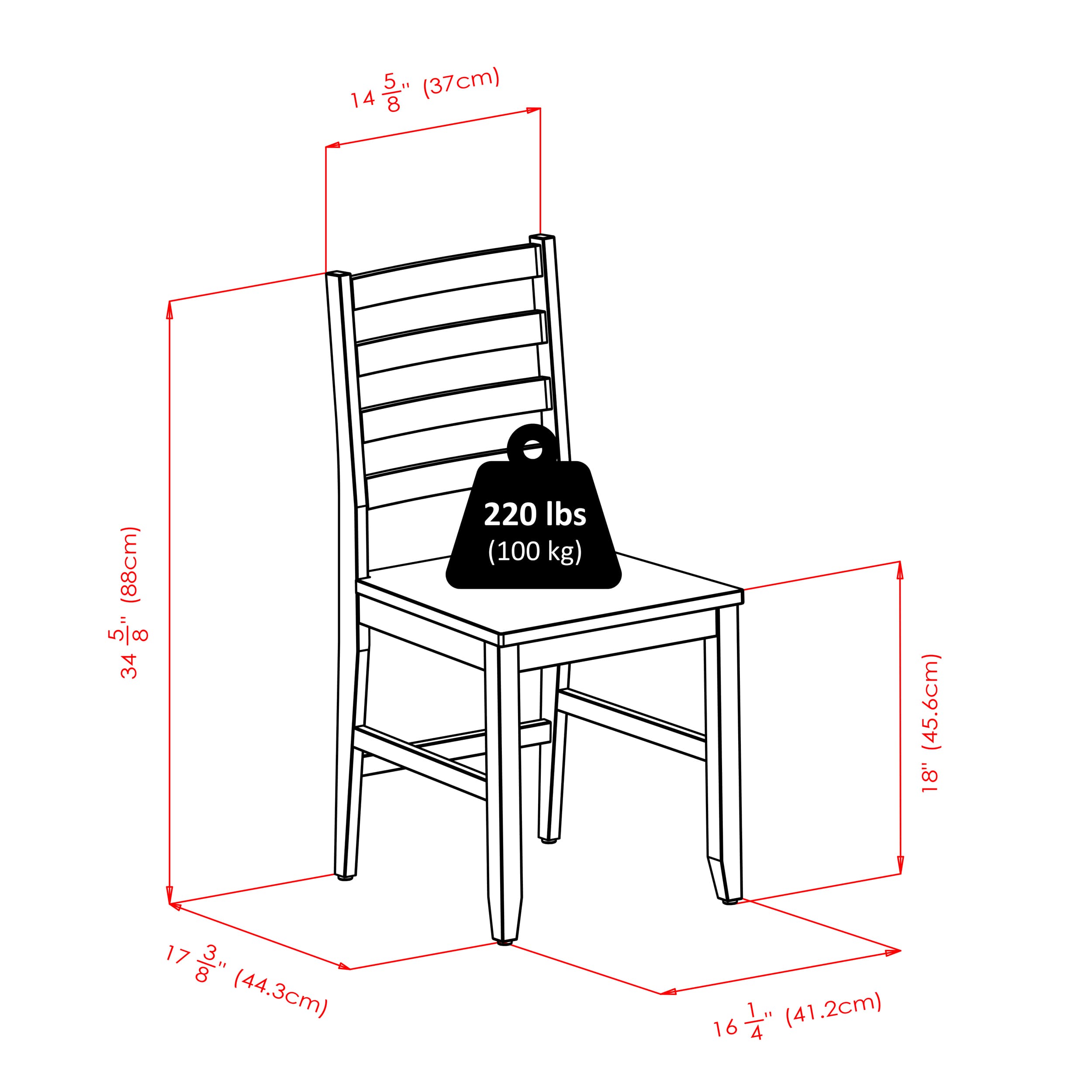 - Includes 2 chairs with ladder back designs for comfortable and stylish seating