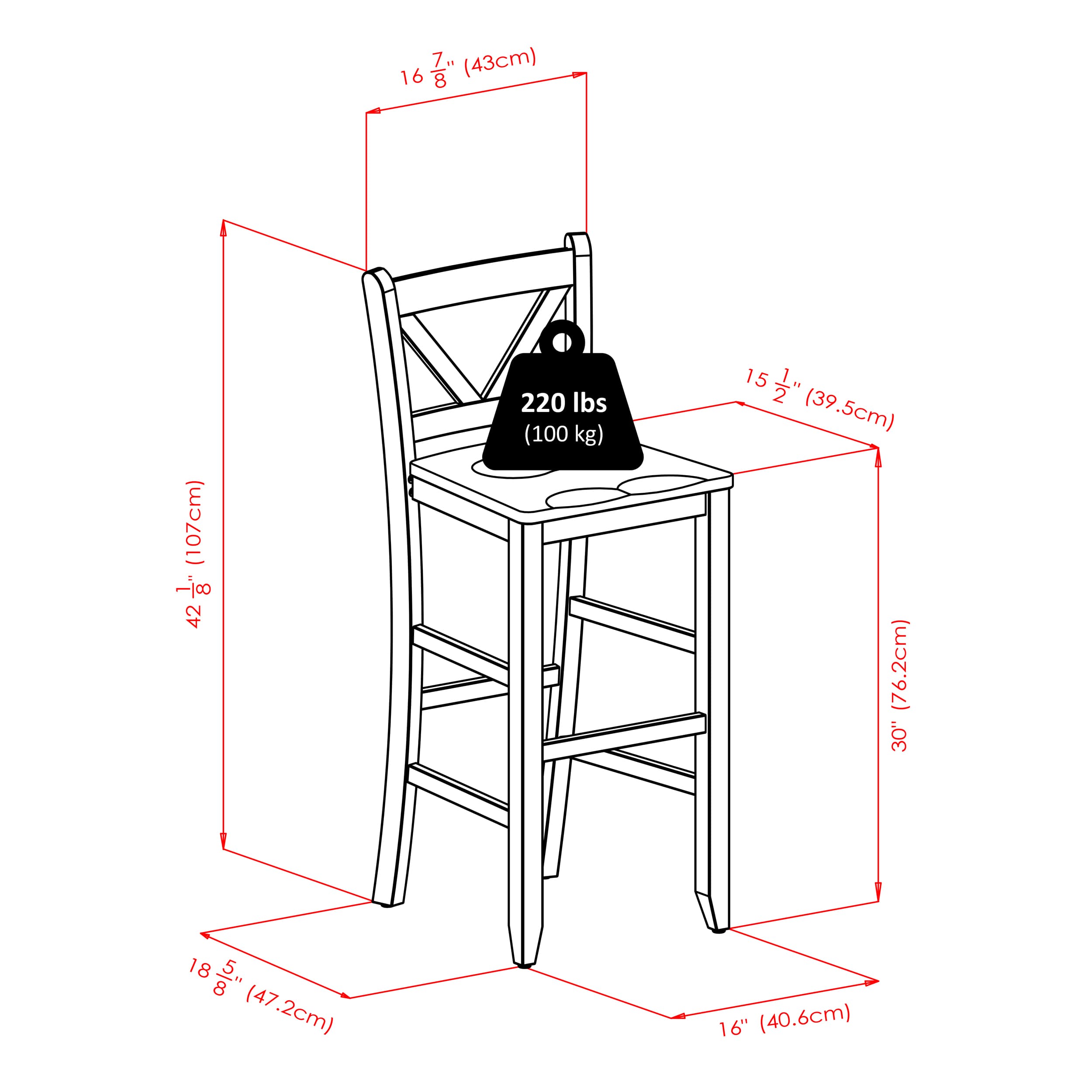 Inglewood 3-Pc High Table with V-Back Bar Stools, Walnut