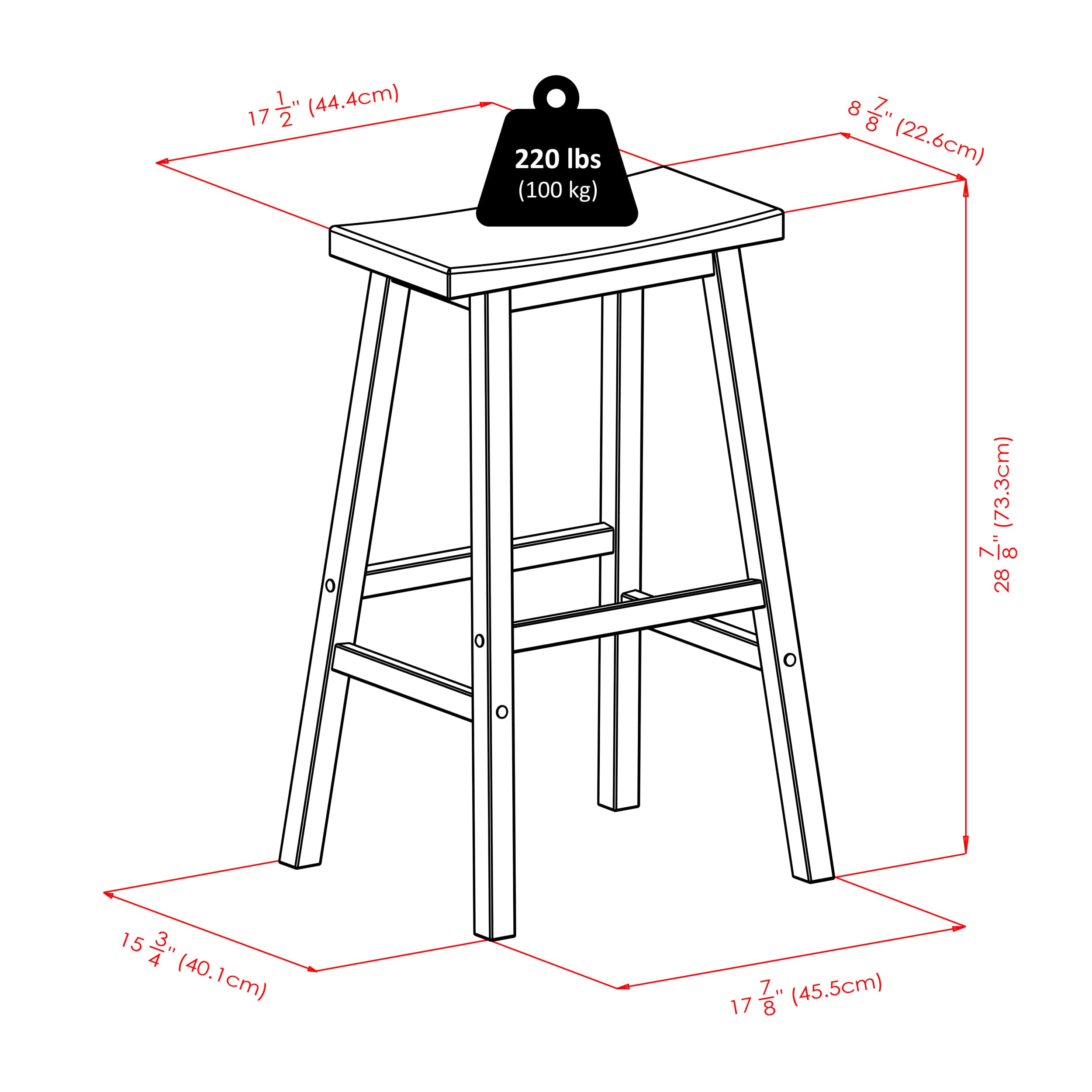 - Includes 2 saddle-seat stools with footrests for comfortable seating