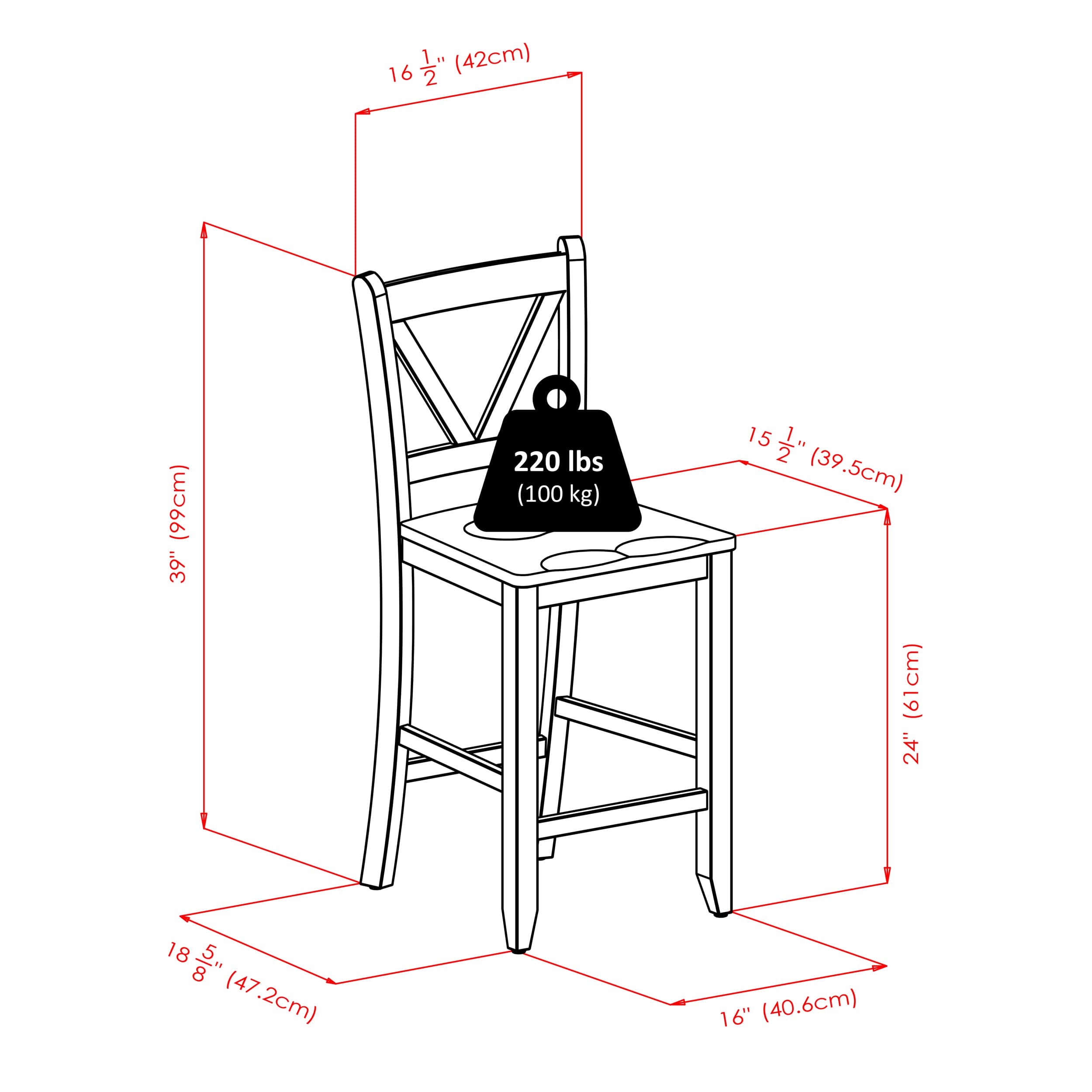 - Dimensions (W x D x H): Table - 33.9 x 33.9 x 36.1 inchesStool - 16.6 x 19.3 x 39.2 inches