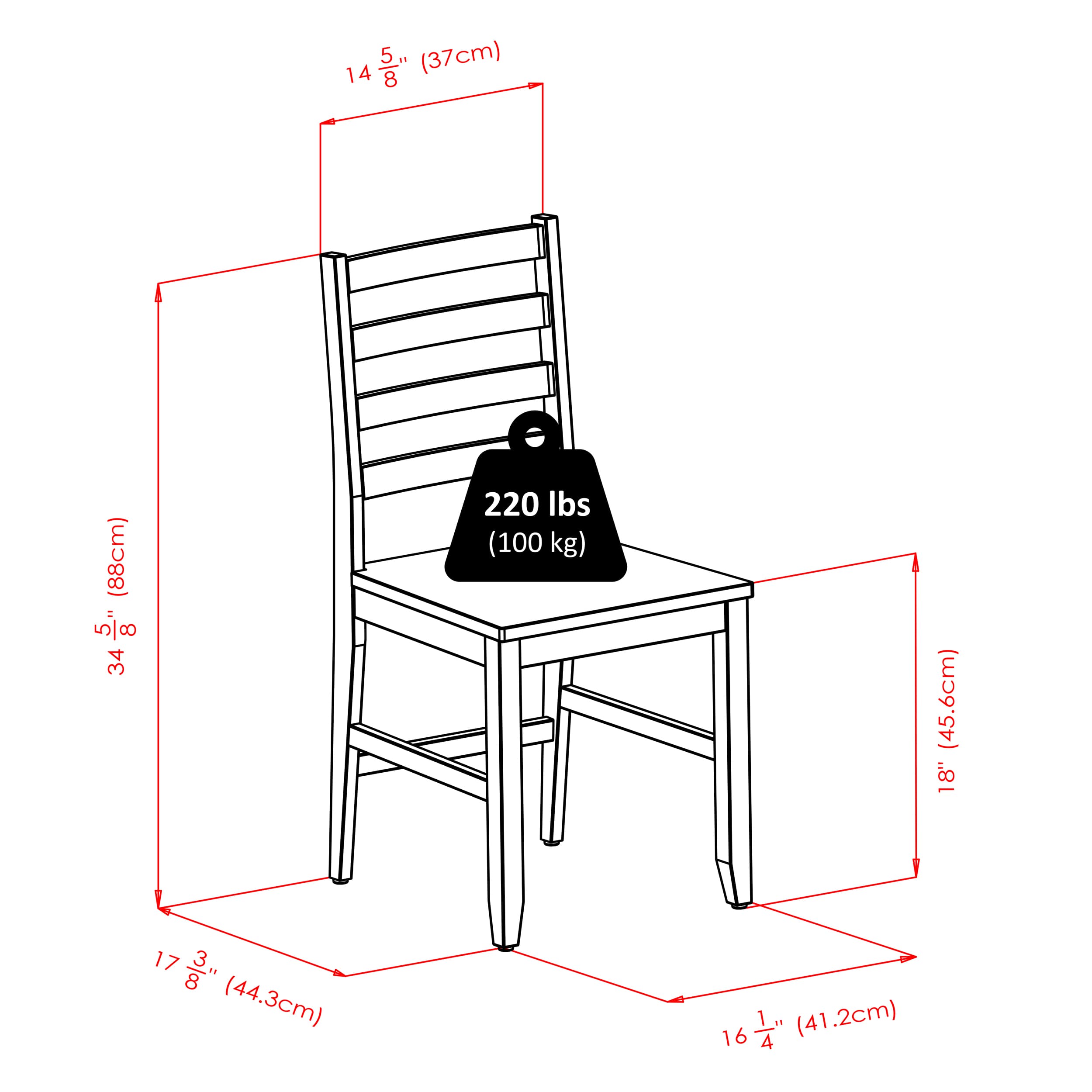 - Dimensions (W x D x H): Table - 42 x 42 x 29.7 inchesChair - 16.6 x 18.7 x 34.7 inches