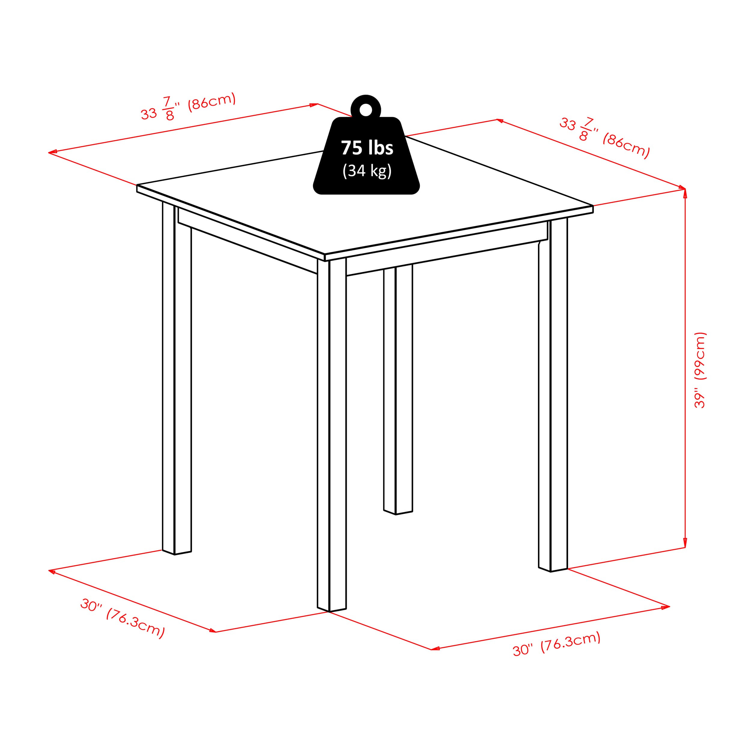 - Dimensions (W x D x H): Table - 33.9 x 33.9 x 39 inchesStool - 16.6 x 19.4 x 42.5 inches