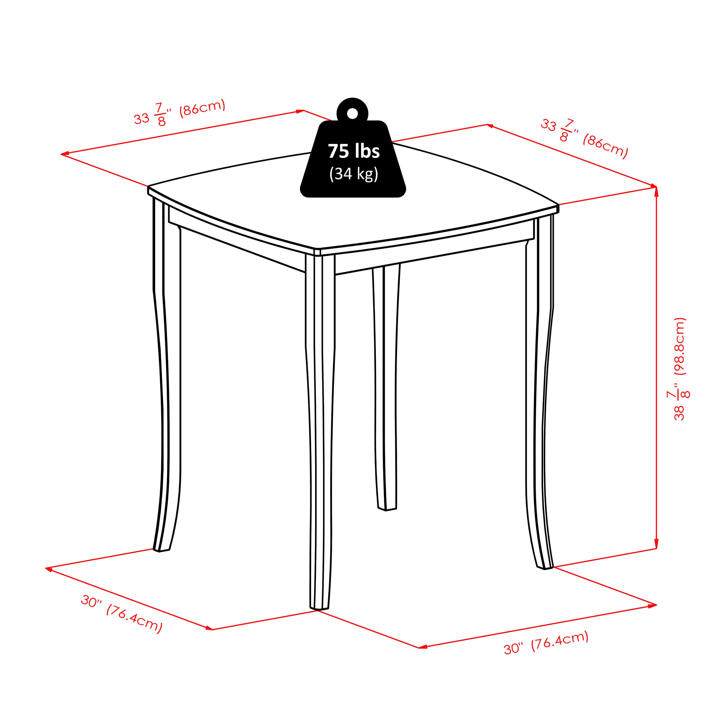- Dimensions (W x D x H): Table - 33.9 x 33.9 x 38.9 inchesStool - 18 x 15.8 x 28.9 inches