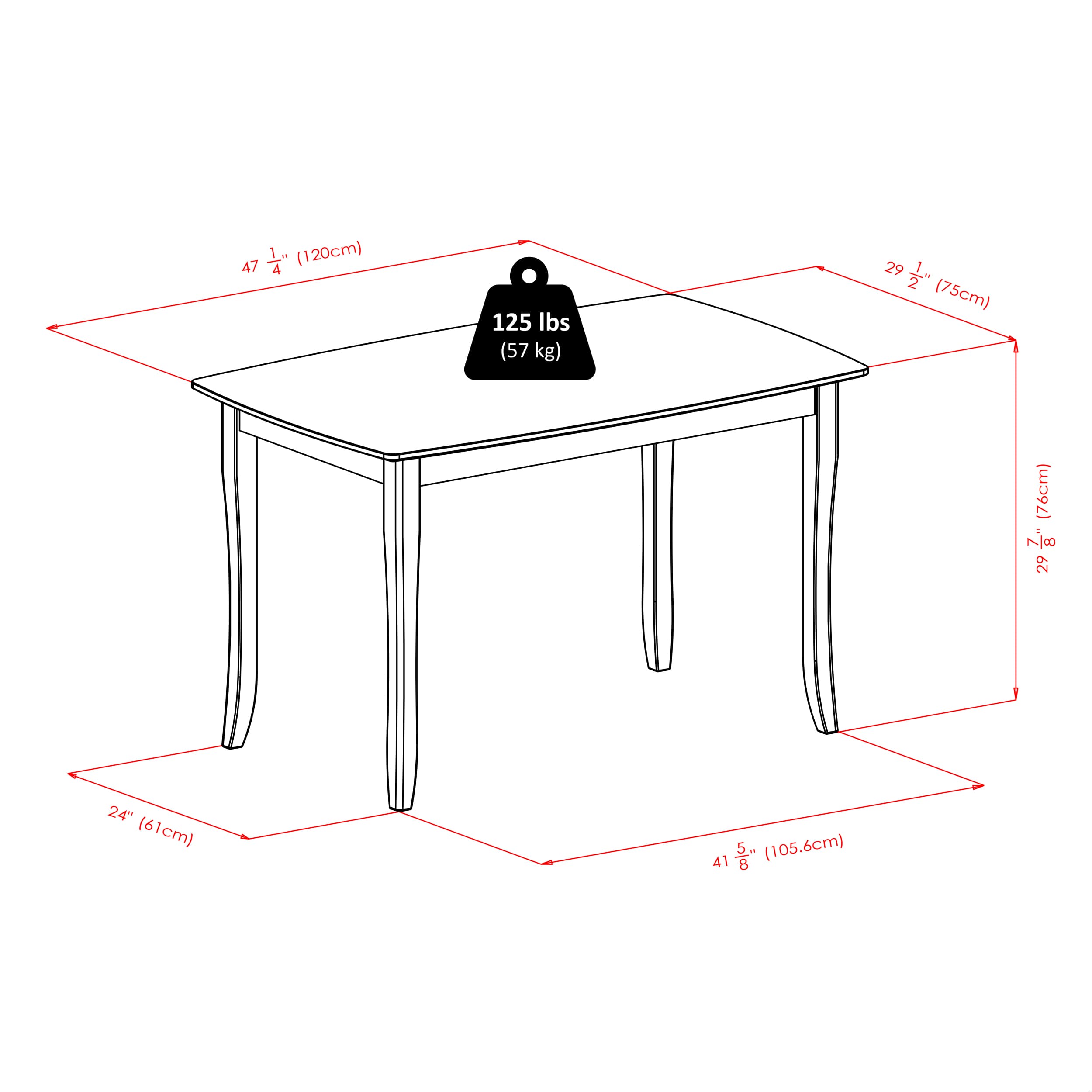 - Dimensions (W x D x H): Table - 47.3 x 29.6 x 29.2 inchesChair - 17.4 x 21.2 x 36.7 inches