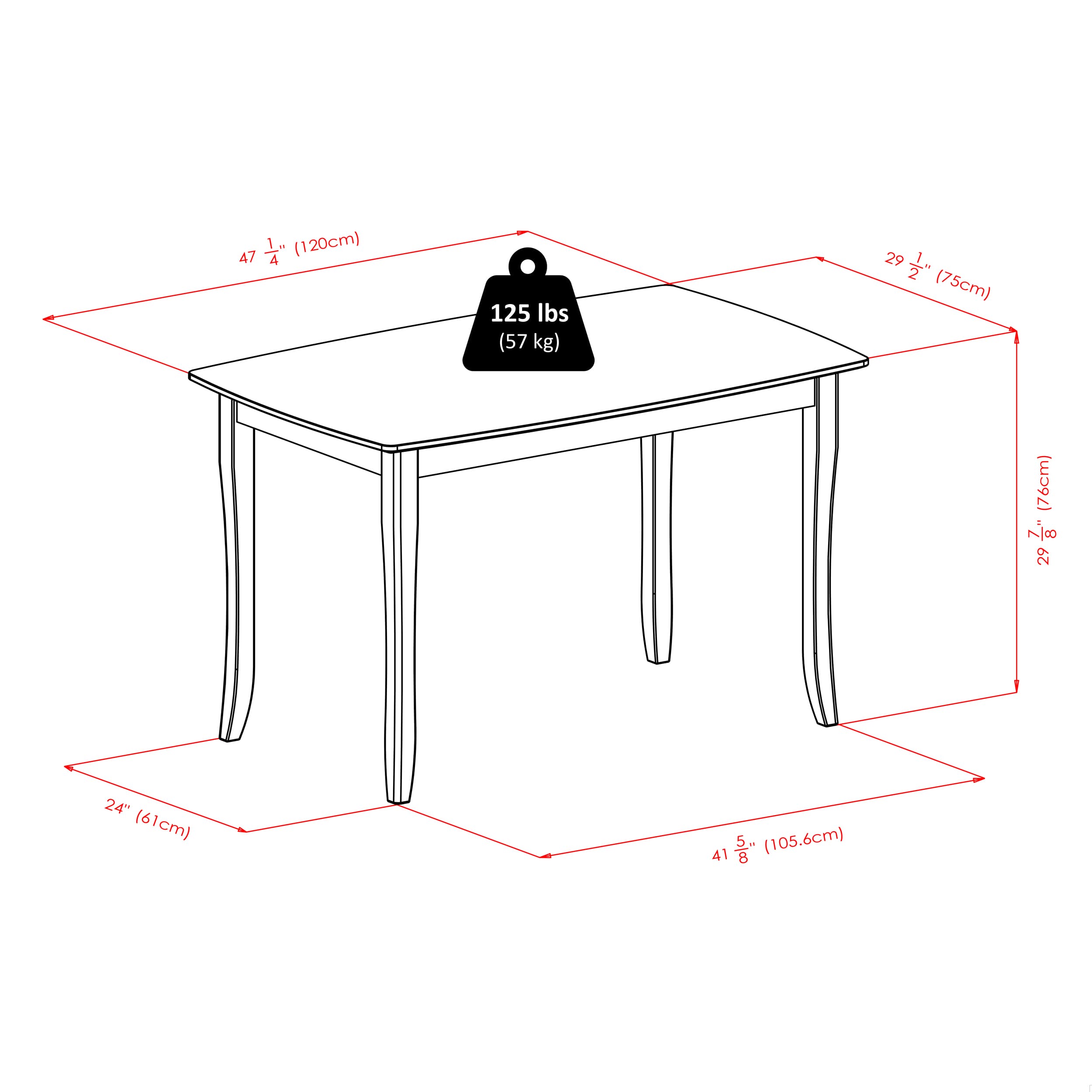 - Table top and legs feature slightly curved design for a classic look