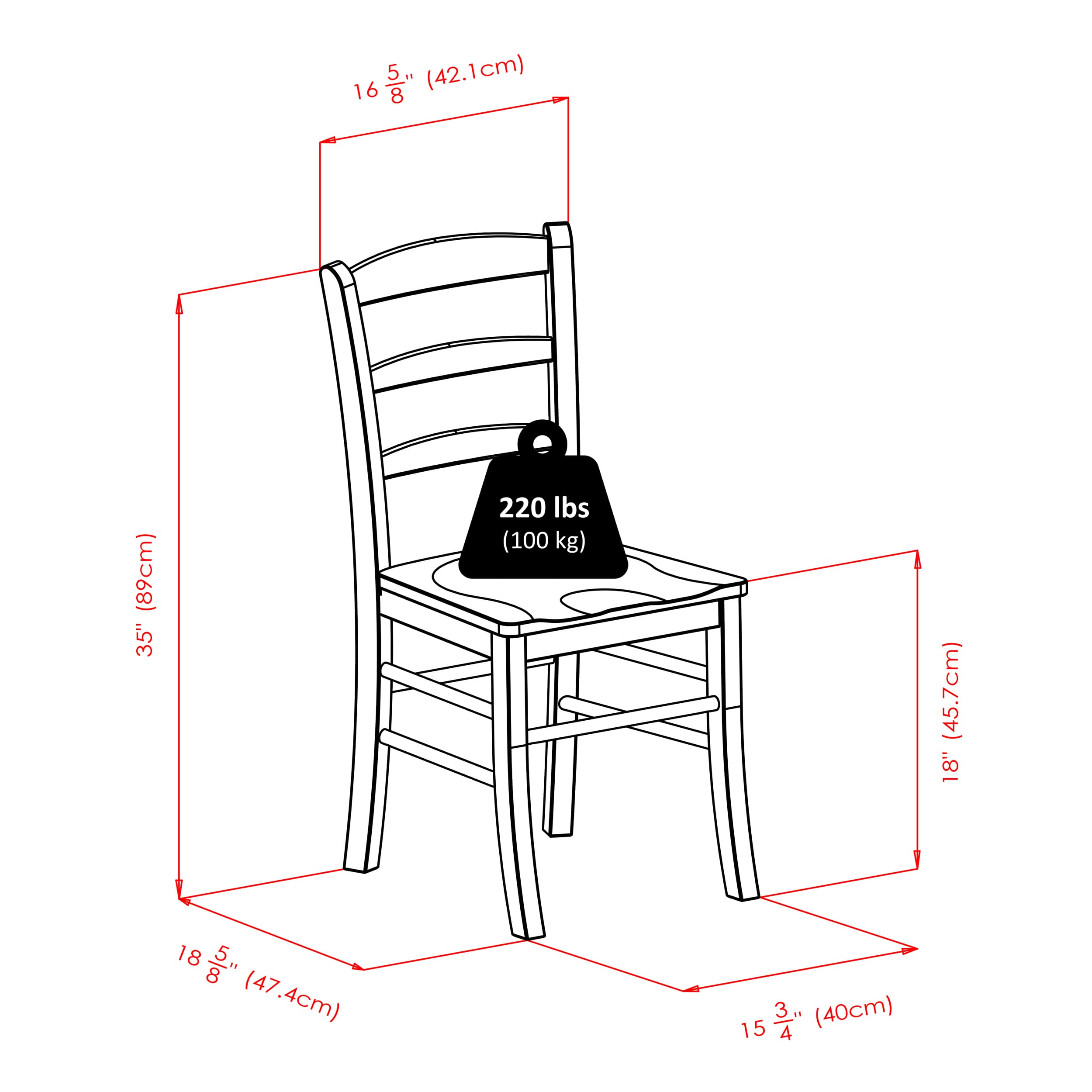 - Includes 4 ladder-back chairs with contoured seats that provide style and comfort