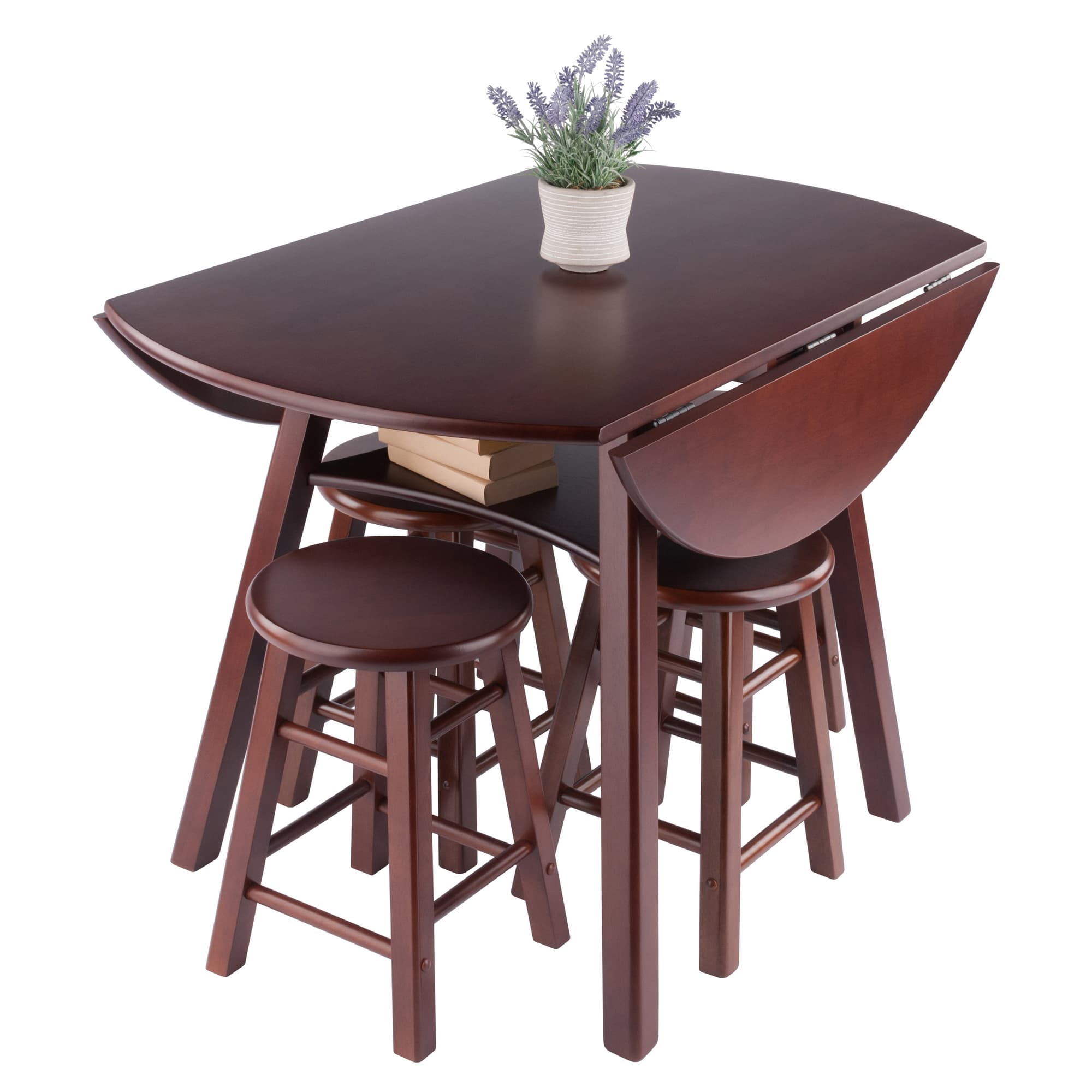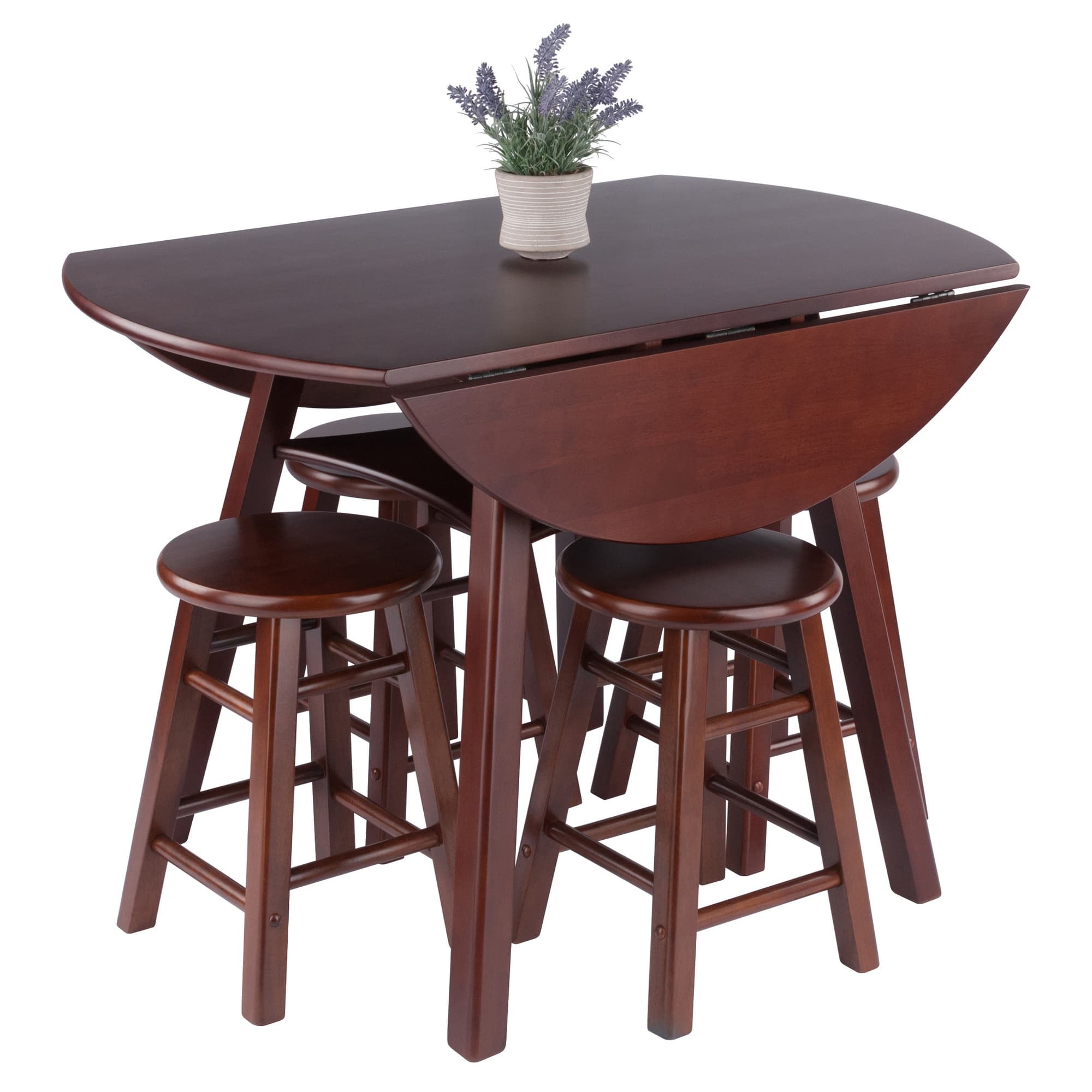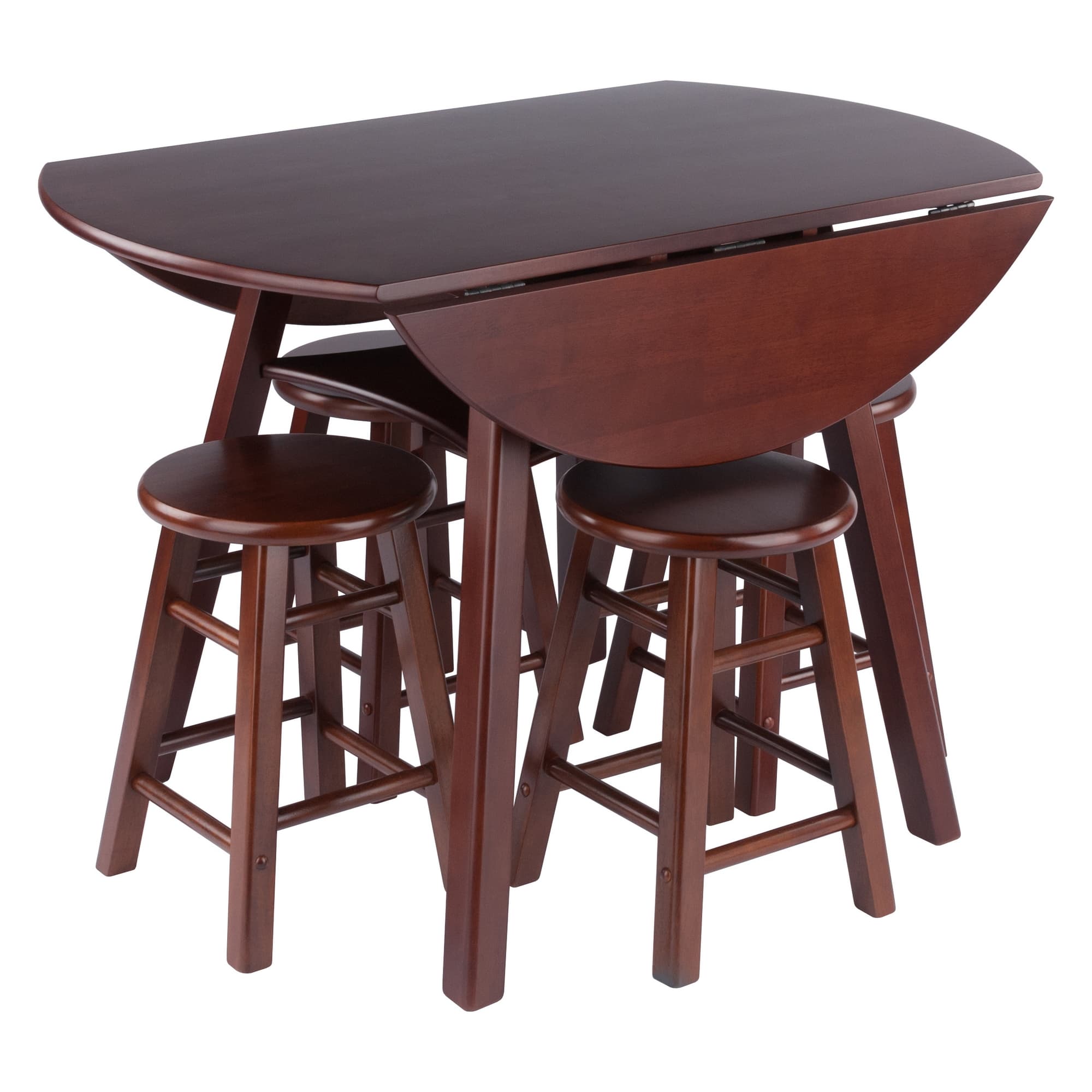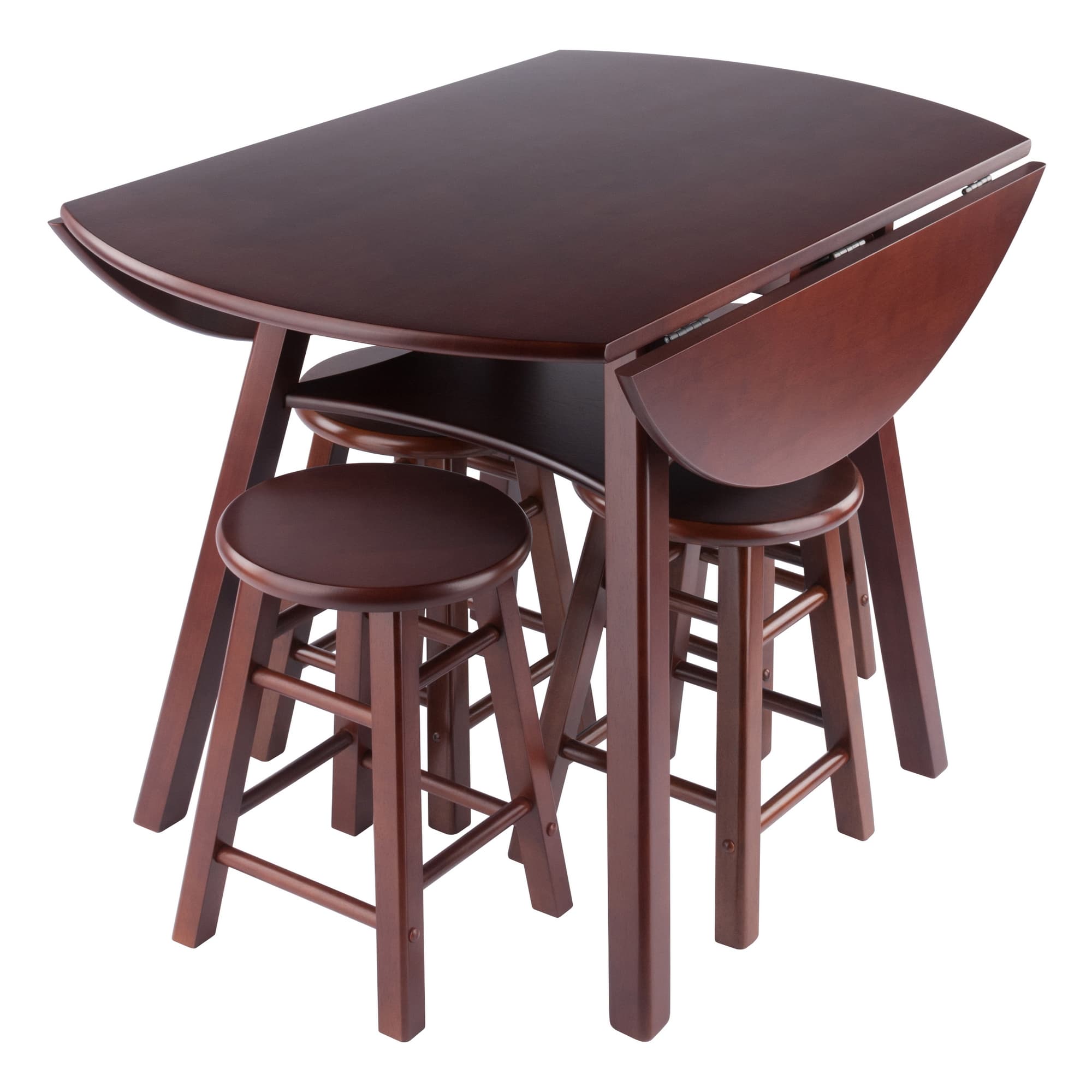 Marbelle Table 5-Pc Drop Leaf Dining Table with 4 Element 18” Dining Stools, Walnut