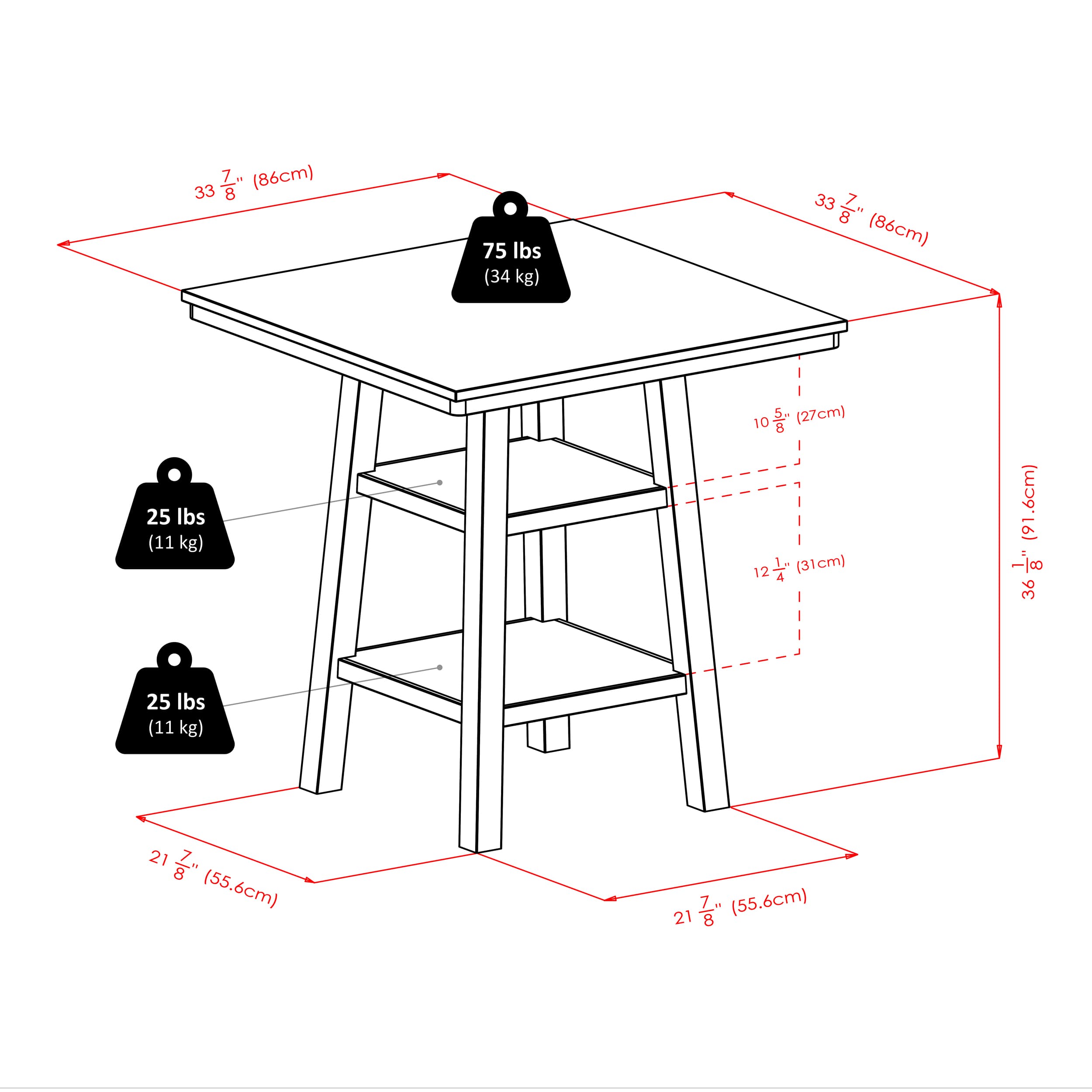 - Dimensions (W x D x H): Table - 33.9 x 33.9 x 36.1 inchesStool - 17.5 x 14.5 x 24 inches