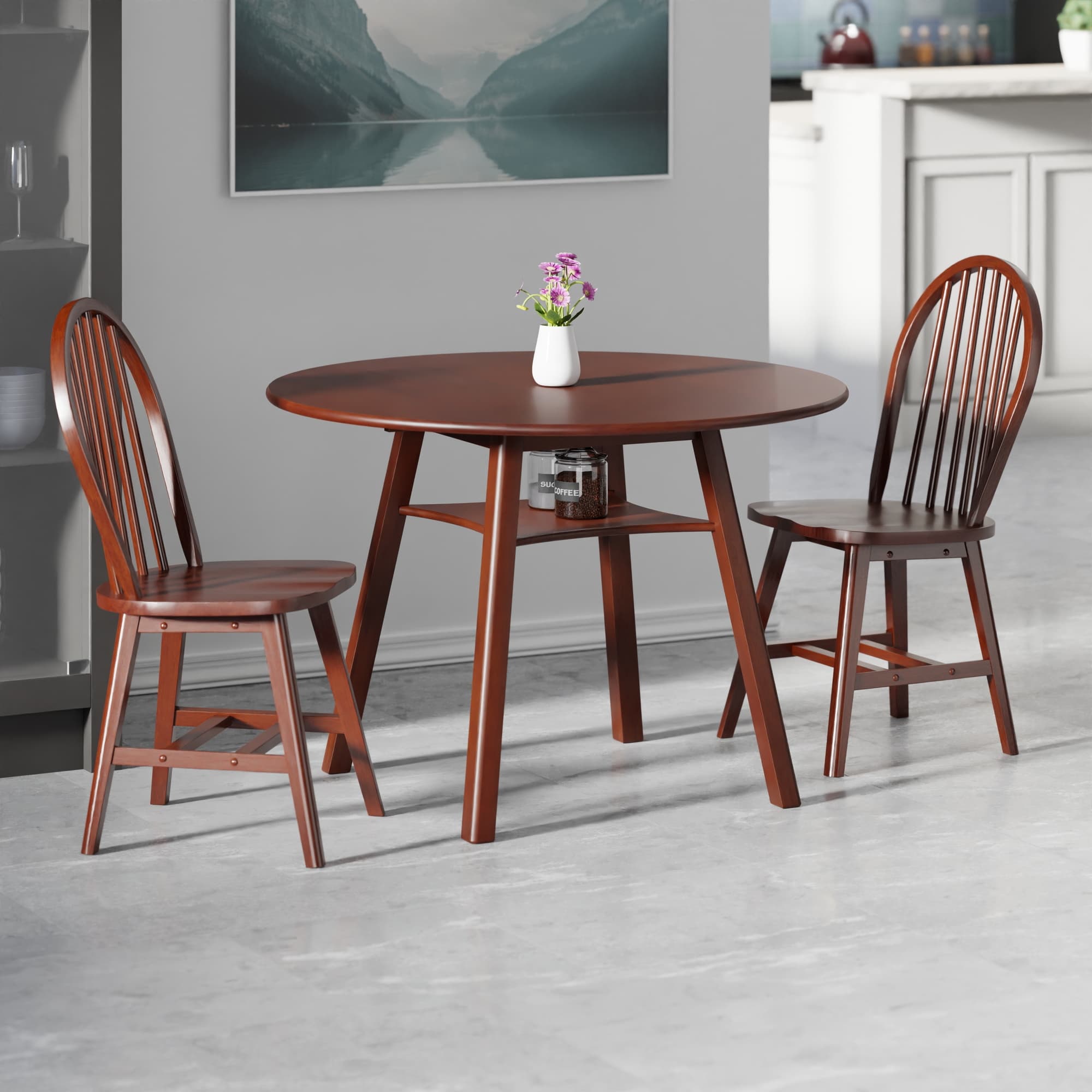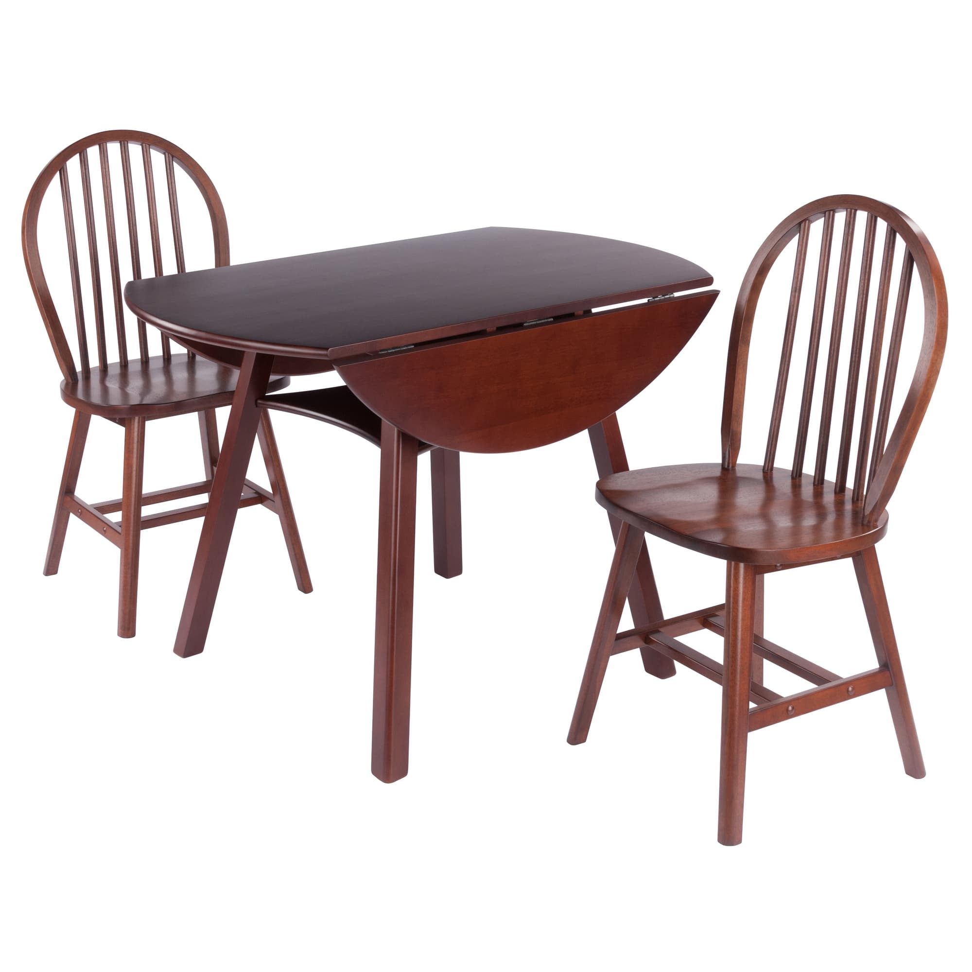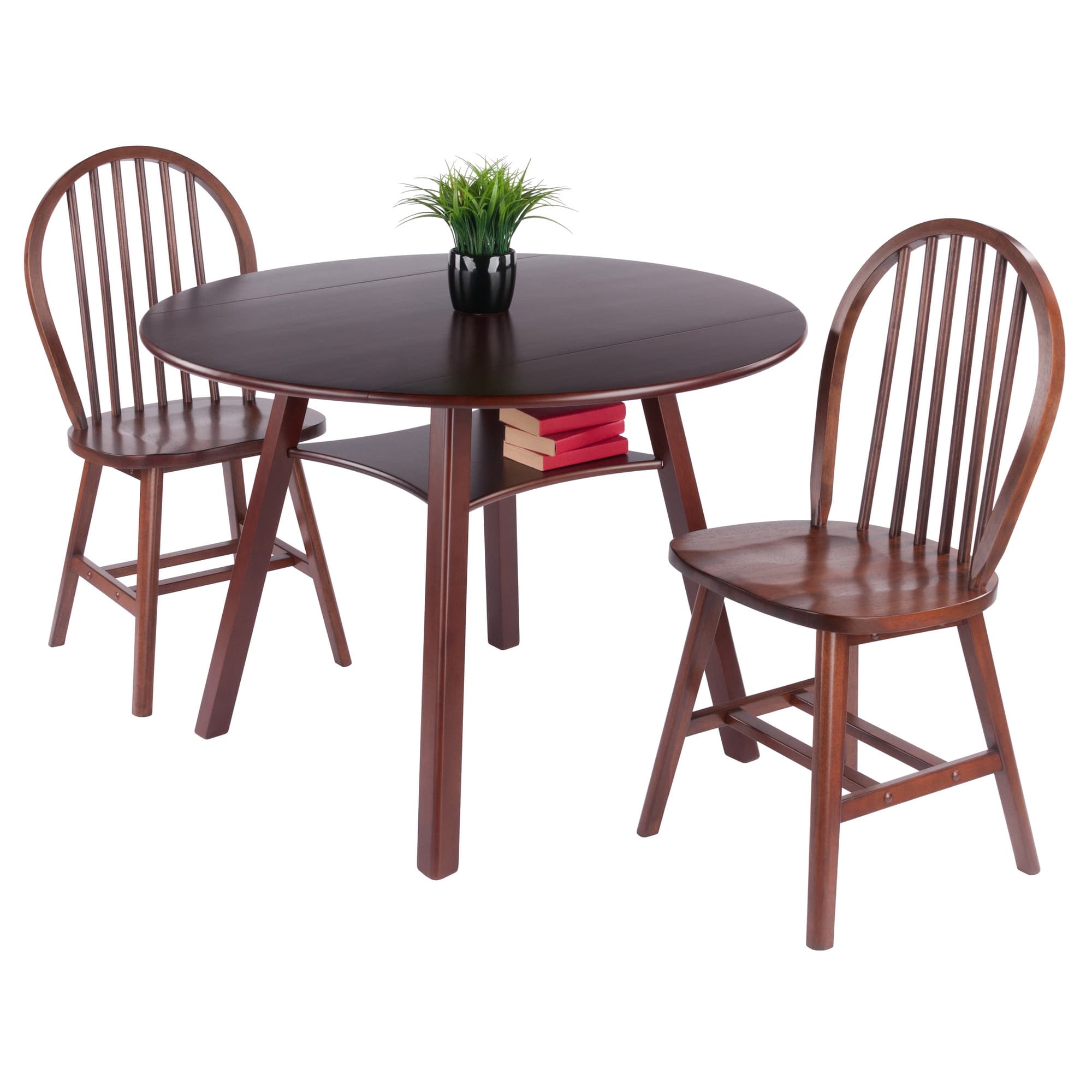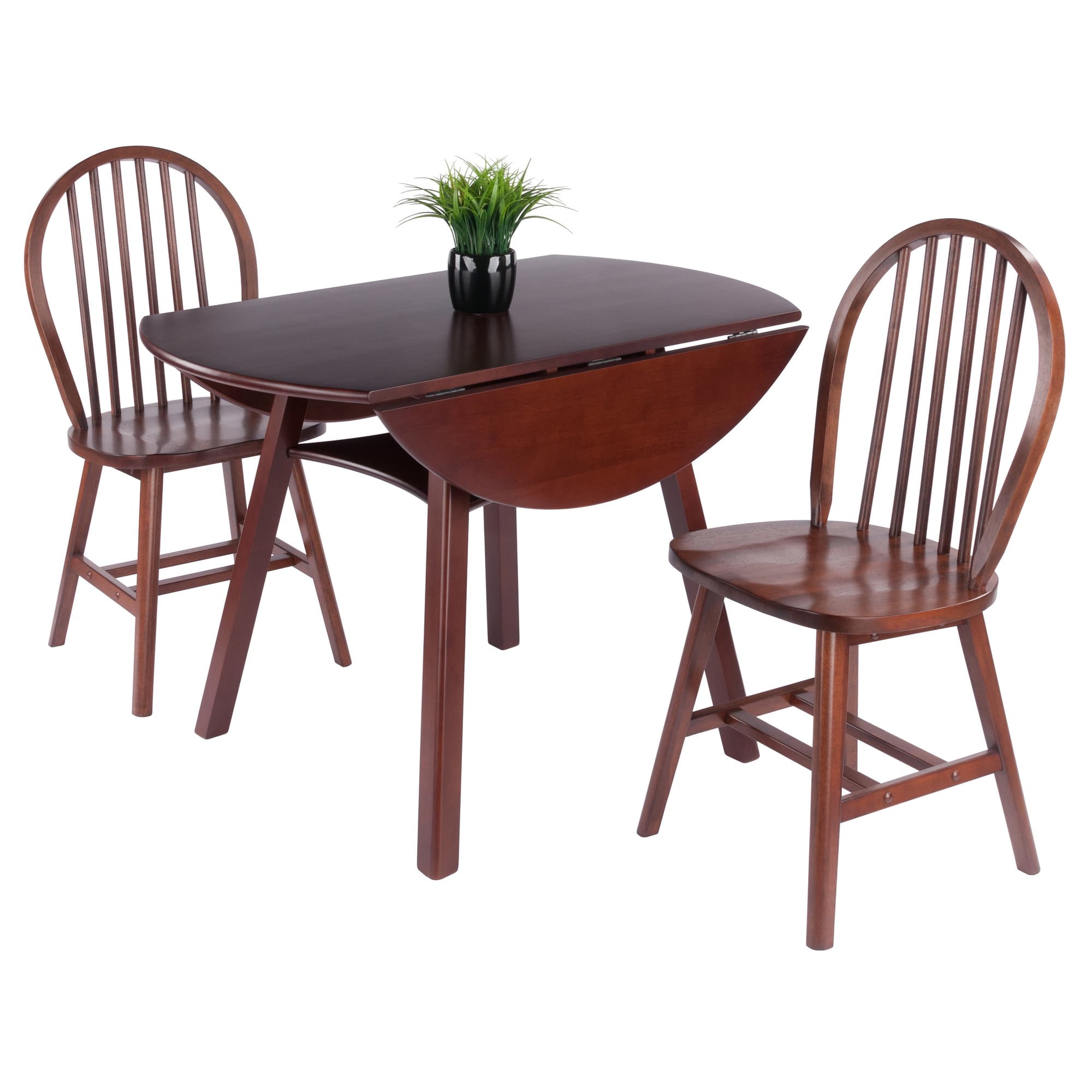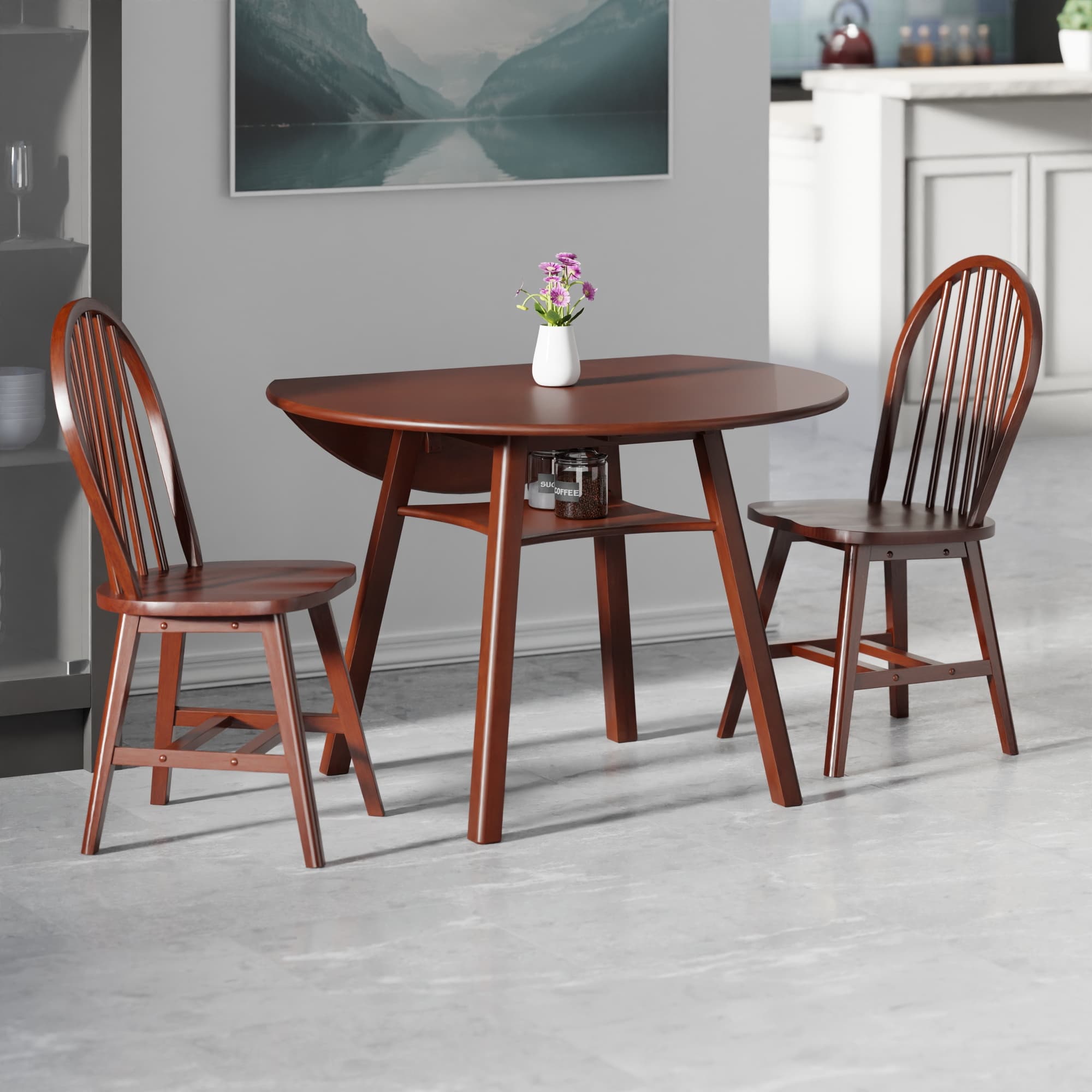 Marbelle 3-Pc Drop Leaf Dining Table with 2 Windsor Chairs, Walnut