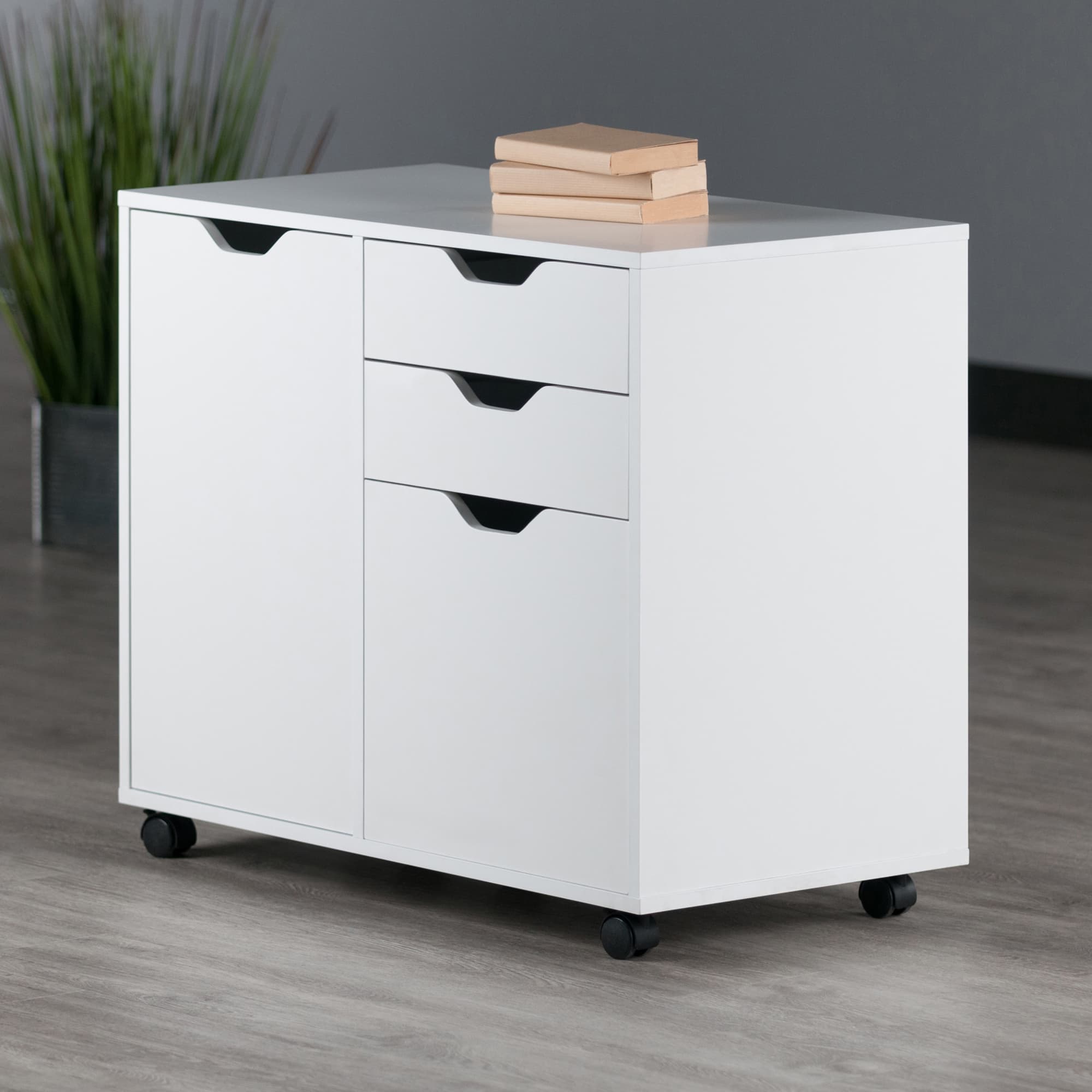 - 2-section with 2 drawers, 1 file drawer, 1 cabinet