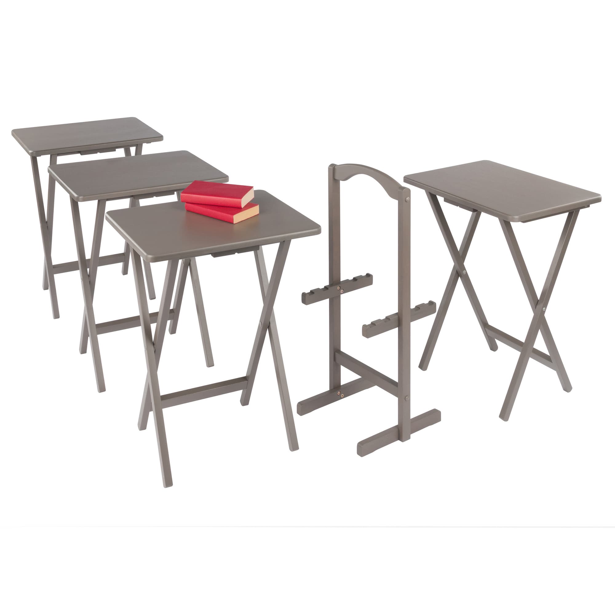 - 4 folding trays with matching rack for storing