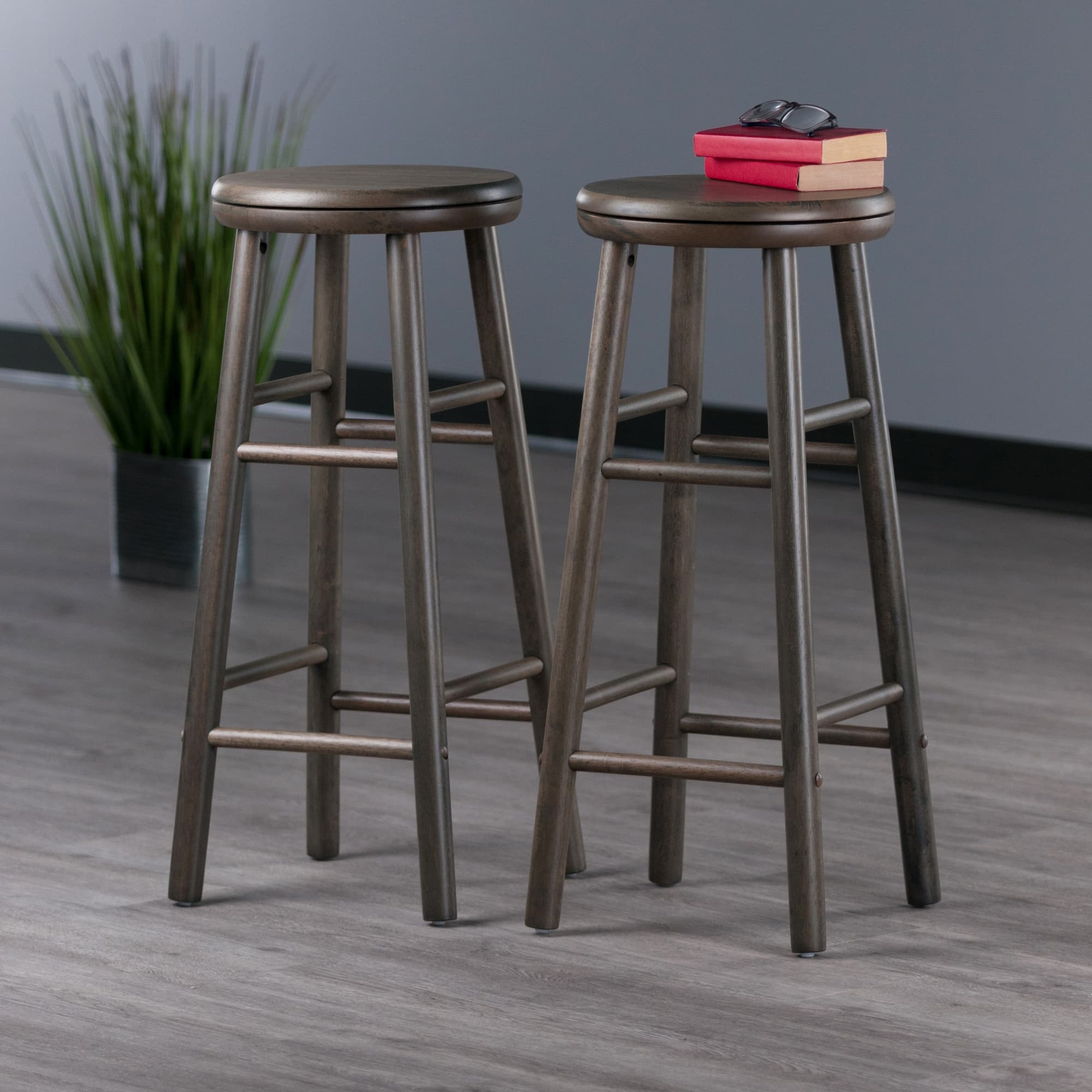 Shelby 2-Pc Swivel Seat Bar Stool Set, Oyster Gray