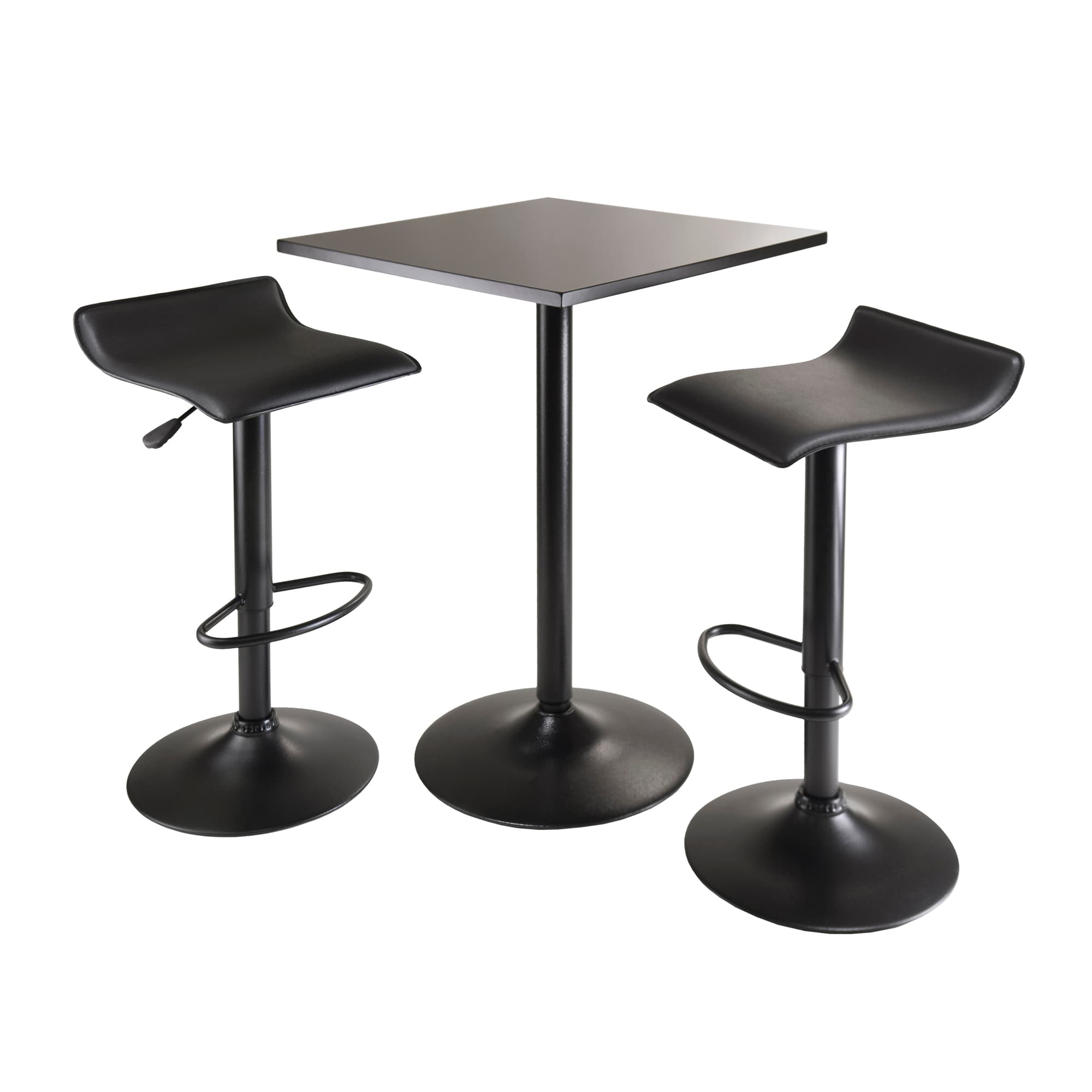 Obsidian 3-Pc Square Pub Table and Adjustable Swivel Stools, Black