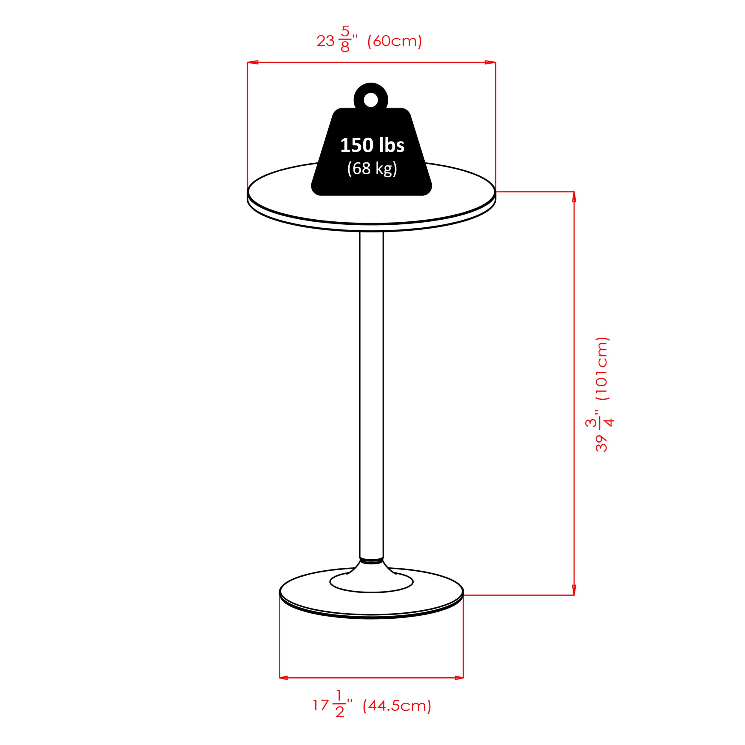 - Dimensions (W x D x H): Table - 23.7 x 23.7 x 39.8 inchesStool - 13.6 x 13.6 x 29 inches