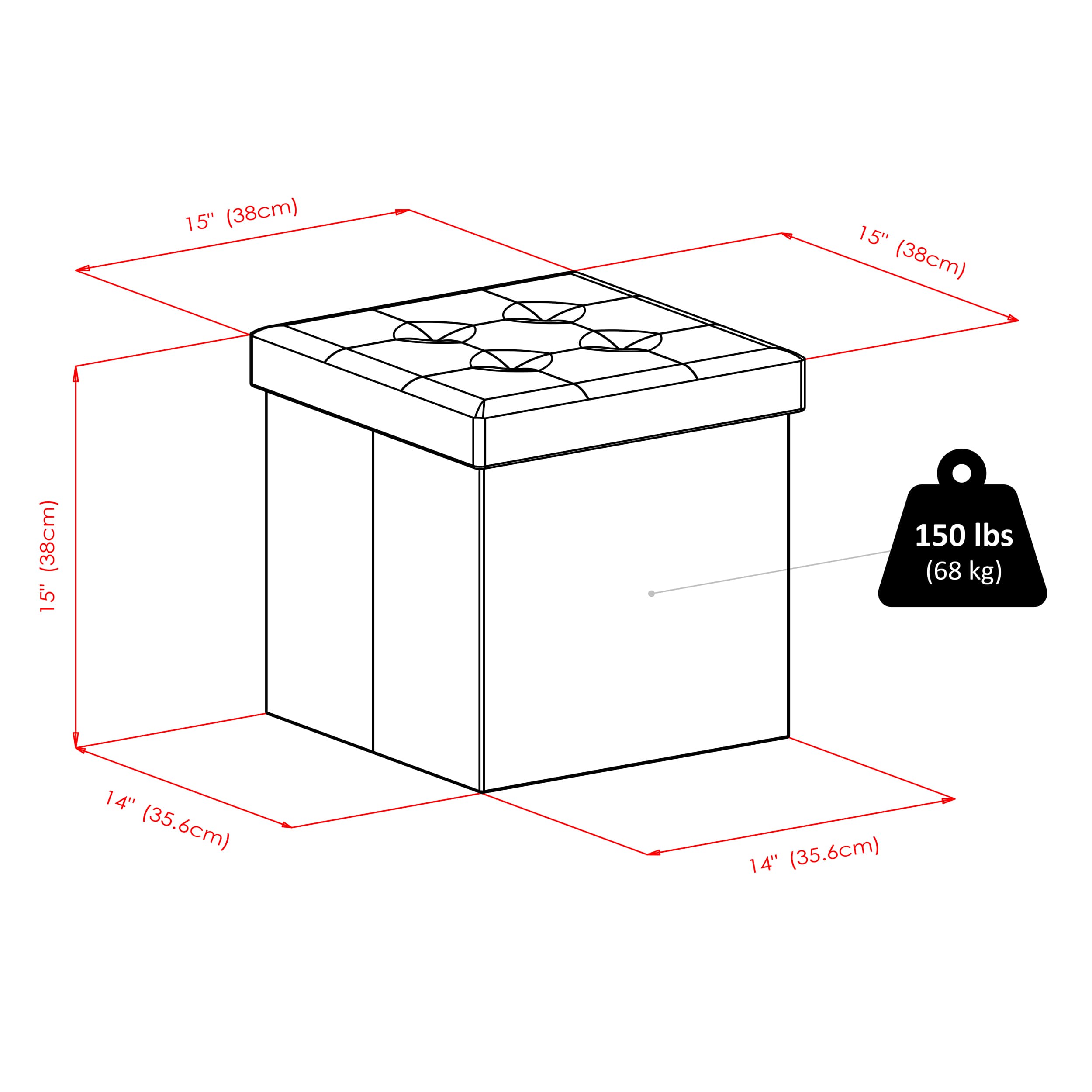 Ashford Square Storage Ottoman, 15" Wide, 15" High, Black