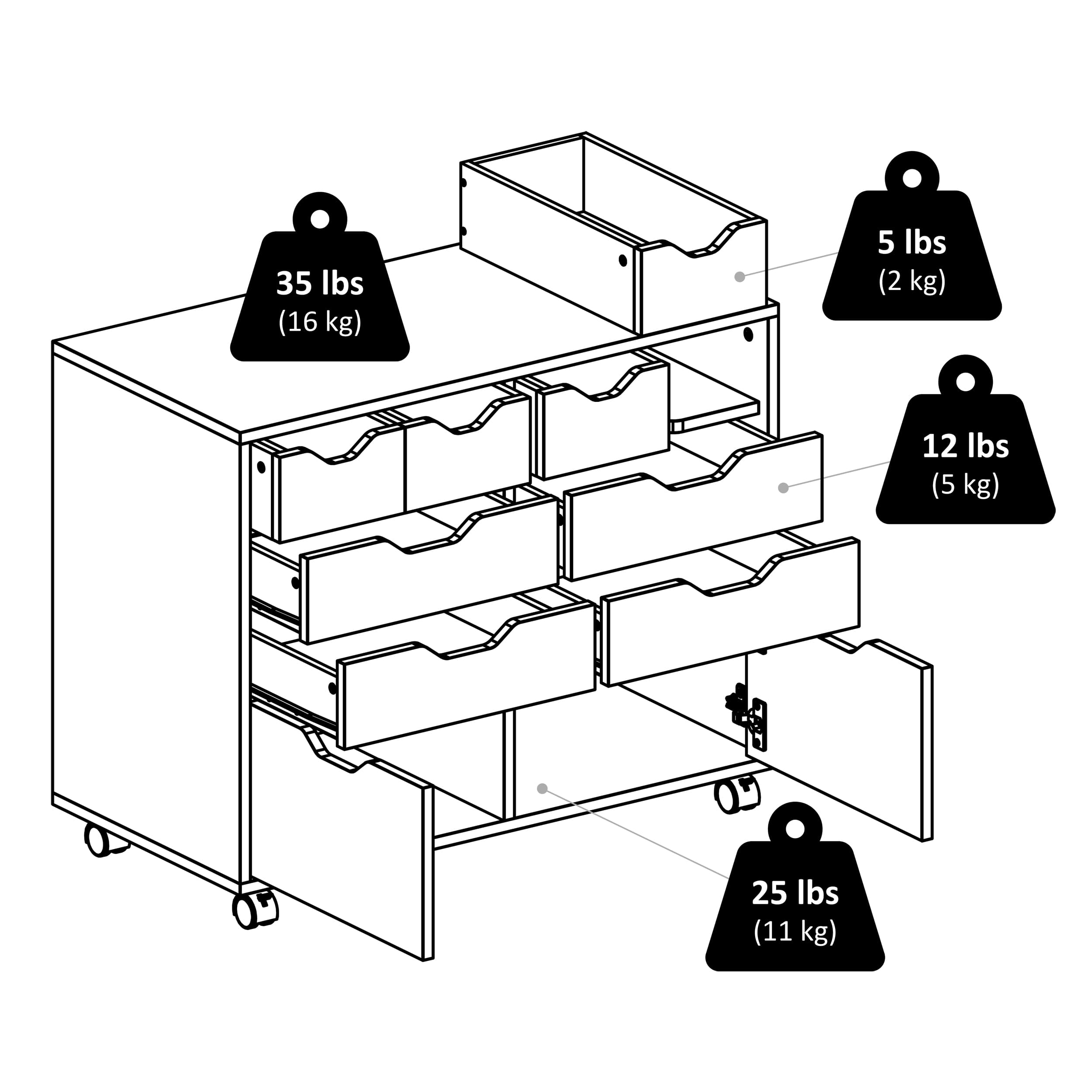 Size: 2 Doors, 4 Drawers, 4 Small Bins