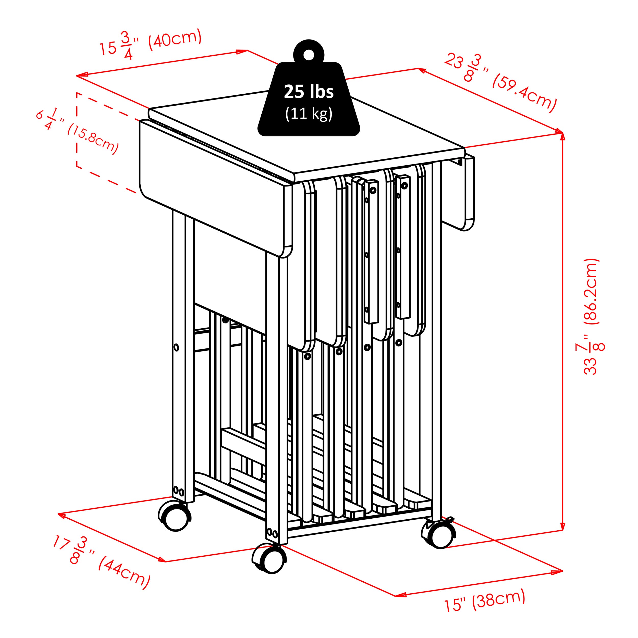 Sophia 5-Pc Snack Table Set with Drop Leaf Mobile Stand, Teak