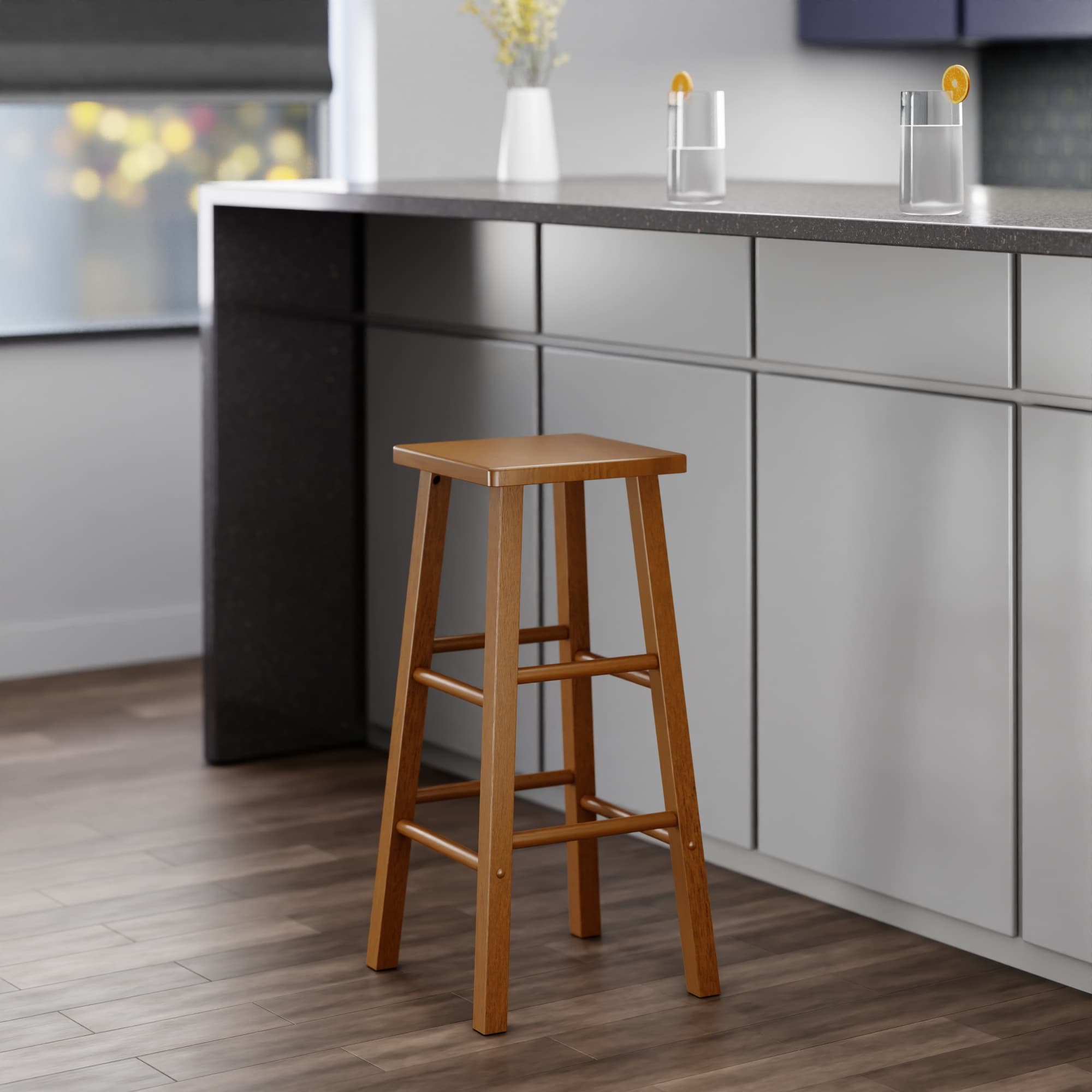 - Built for stability, with flared stool legs and solid wood construction