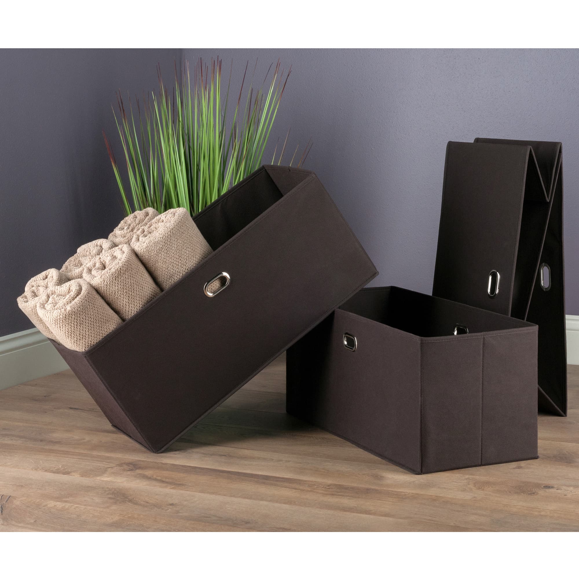 Torino 3-Pc Foldable Fabric Basket Set, Large, Chocolate