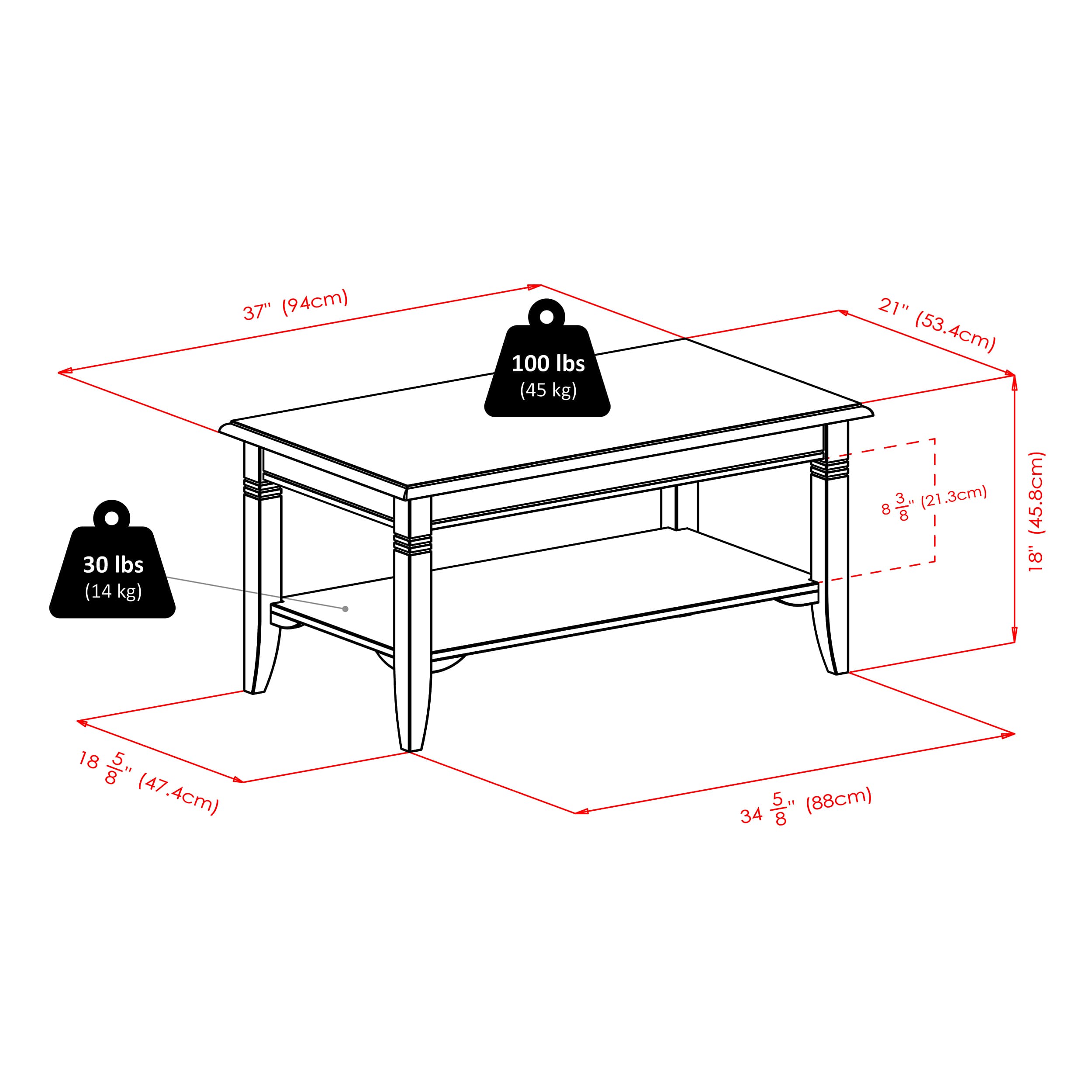 - Lower shelf offers extra storage space. Perfect for remote controls, books, and other daily-use living room items.