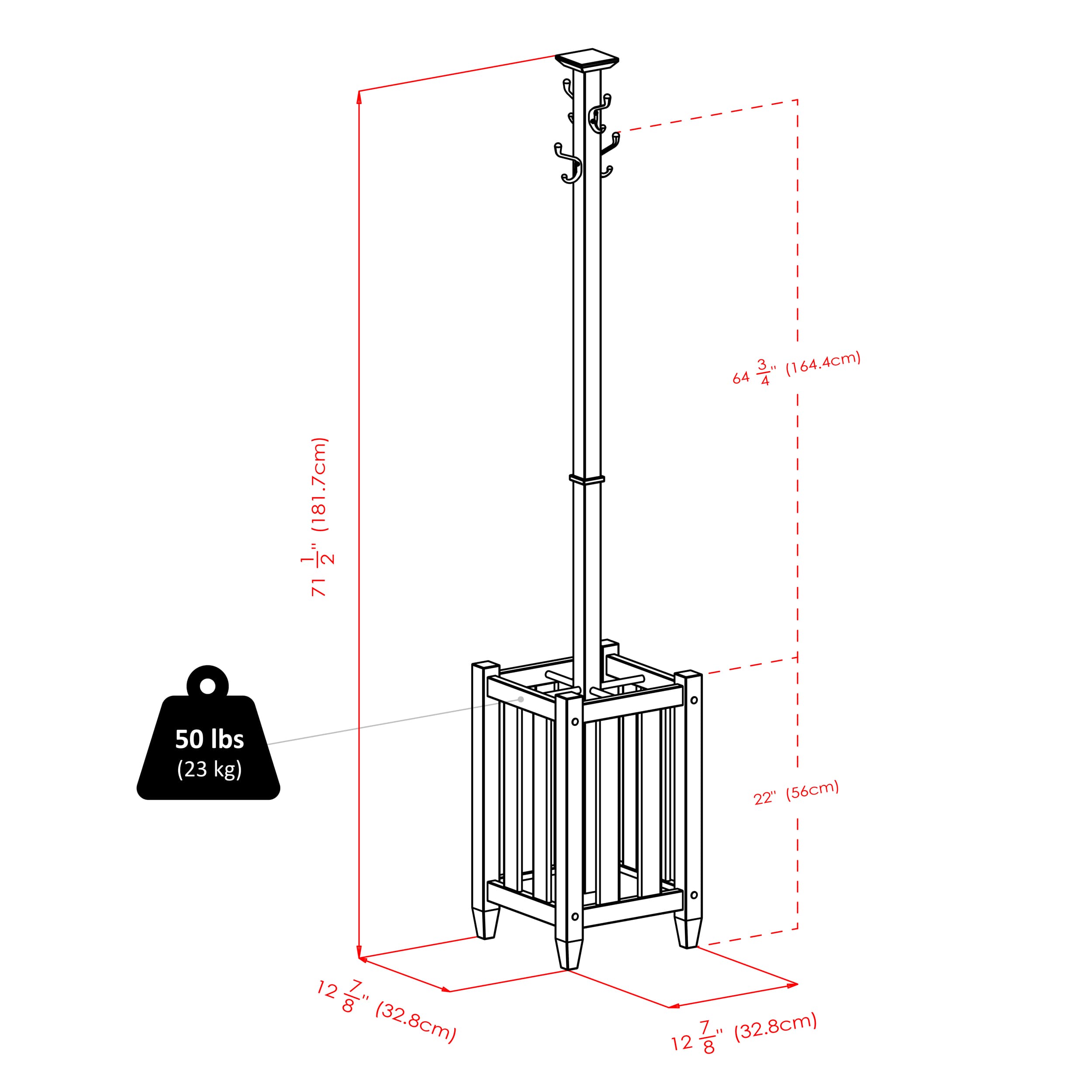 Memphis Coat Rack with Umbrella Stand, 72” High, Cappuccino