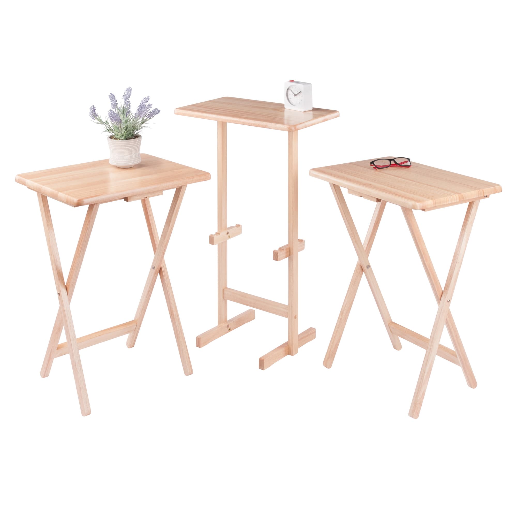 - Compact and Convenient Design: Folding tables store neatly on the stand, keeping your living space tidy and organized