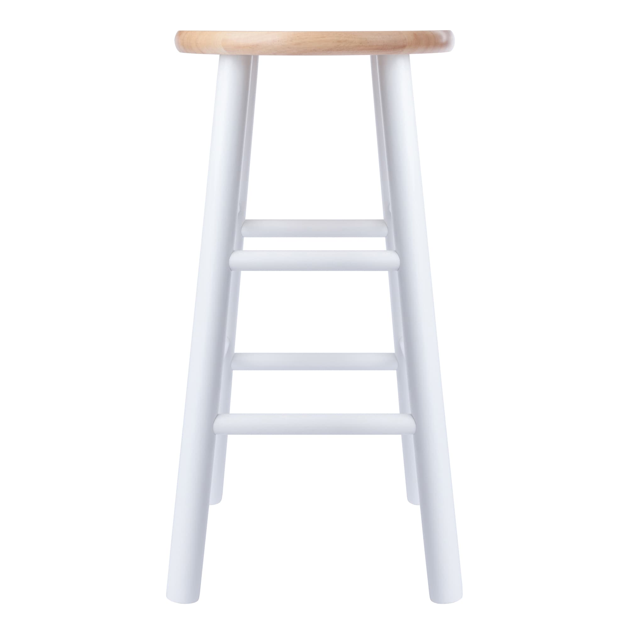 - Durable solid wood construction and flared stool legs with crossbars provide extra stability