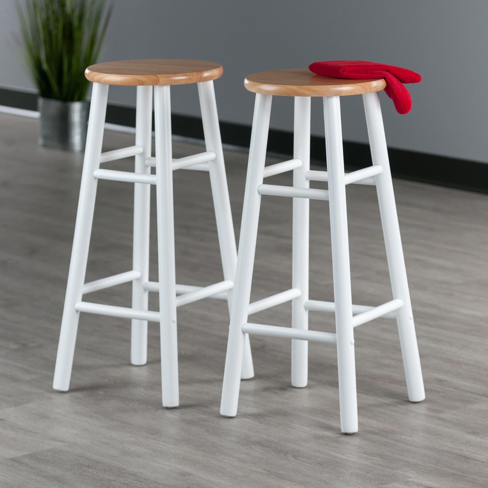 Winsome Huxton 2-Pc Bar Stool Set, 29” High, Natural and White