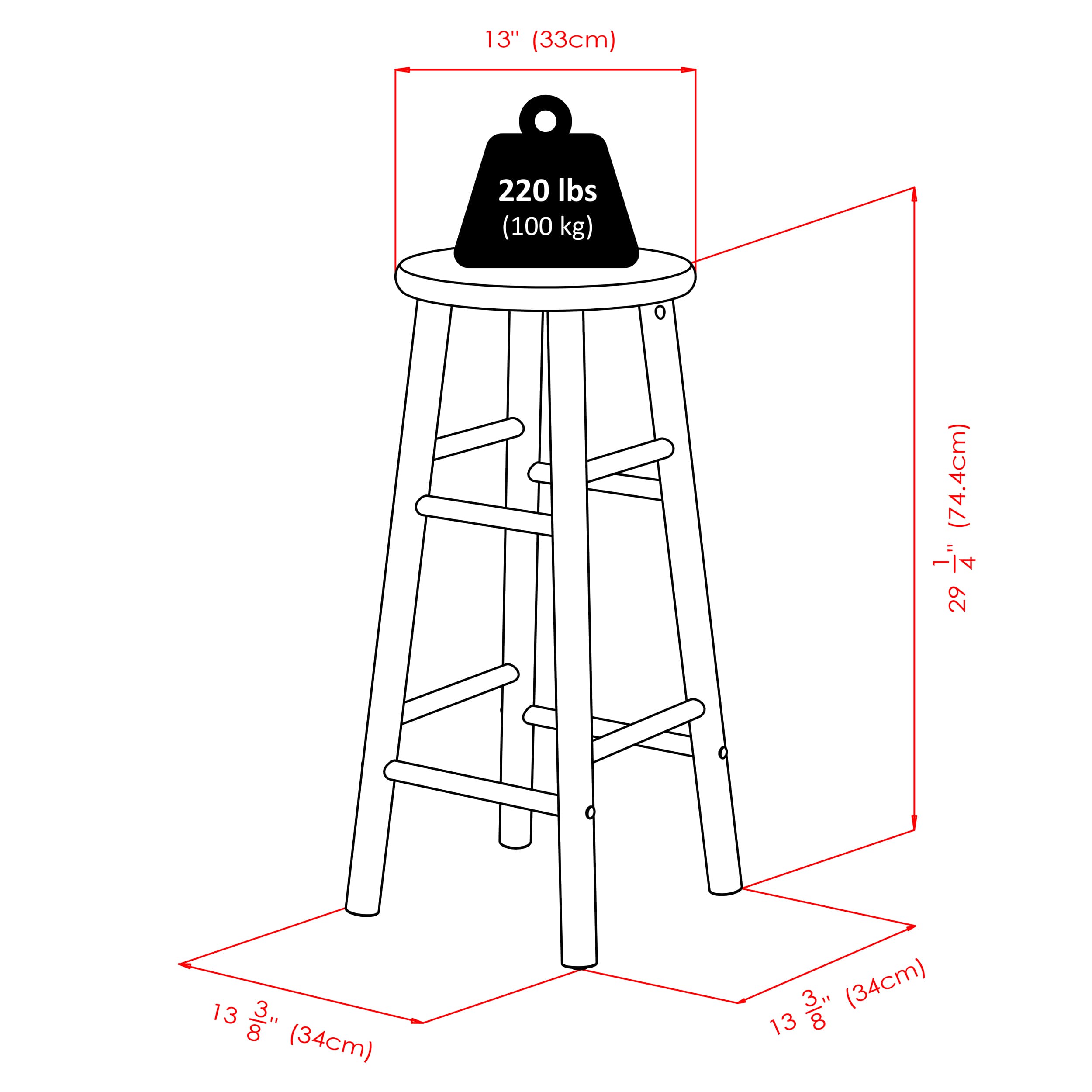 - Durable solid wood construction and flared stool legs with crossbars provide extra stability