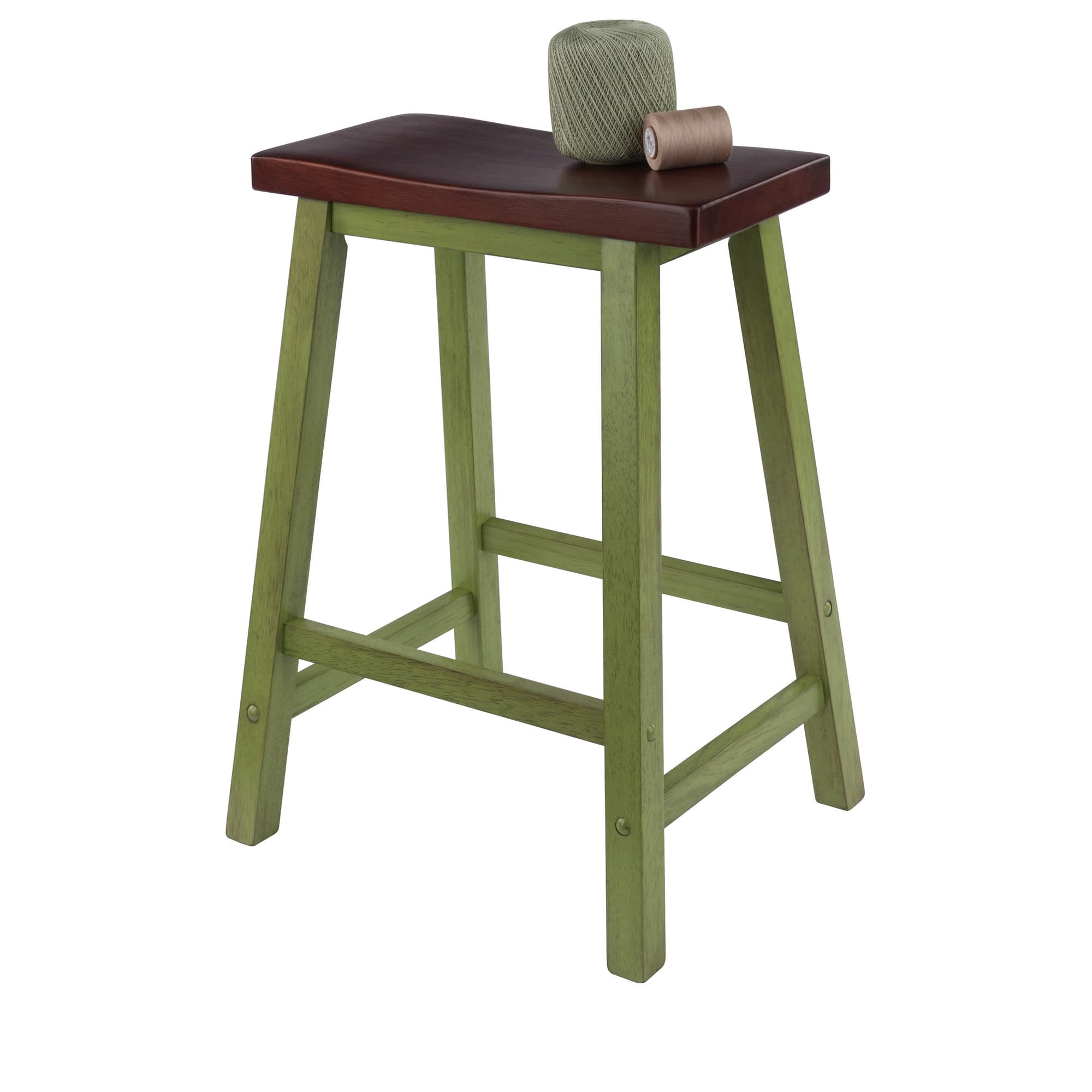 Satori Saddle Seat 24In Counter Stool Rustic Green and Walnut Finish
