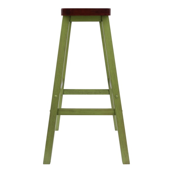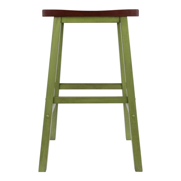 Satori Saddle Seat Bar Stool, Rustic Green and Walnut