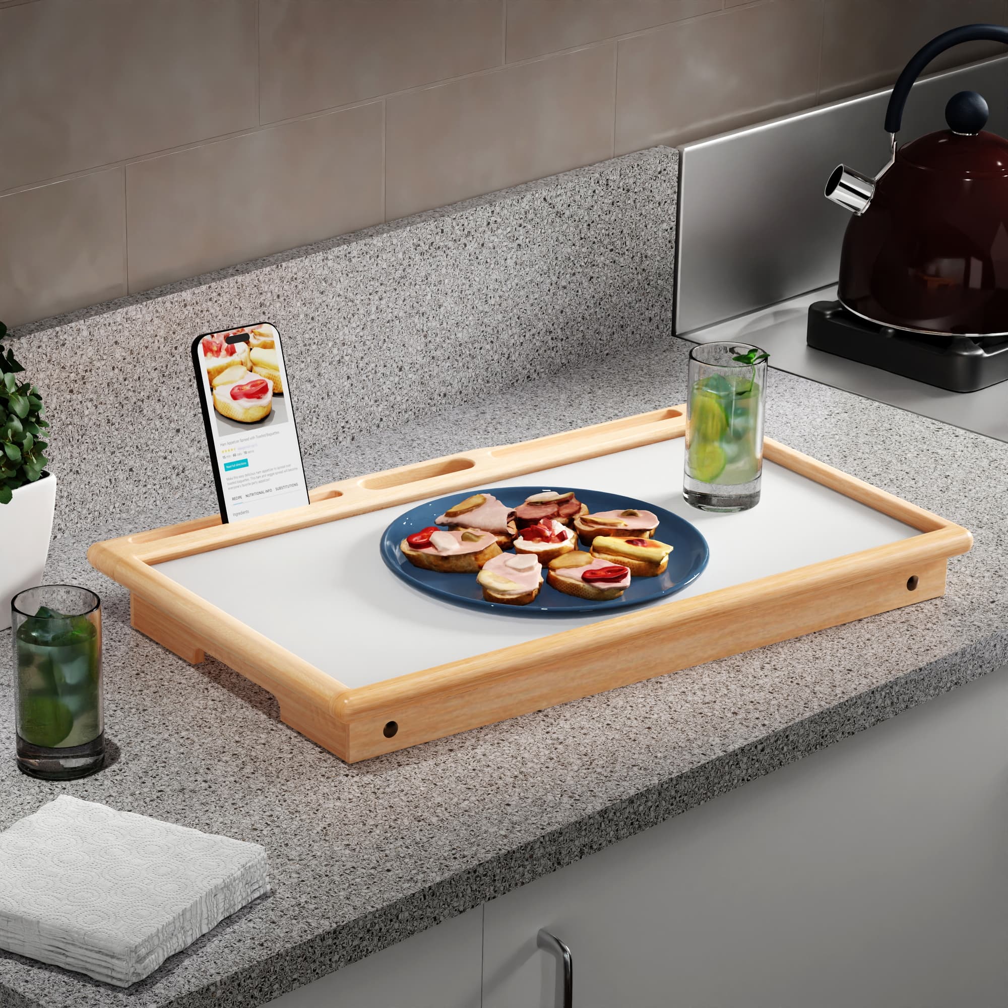 Arlo Breakfast Tray w/ Flip Top, Natural & White Finish