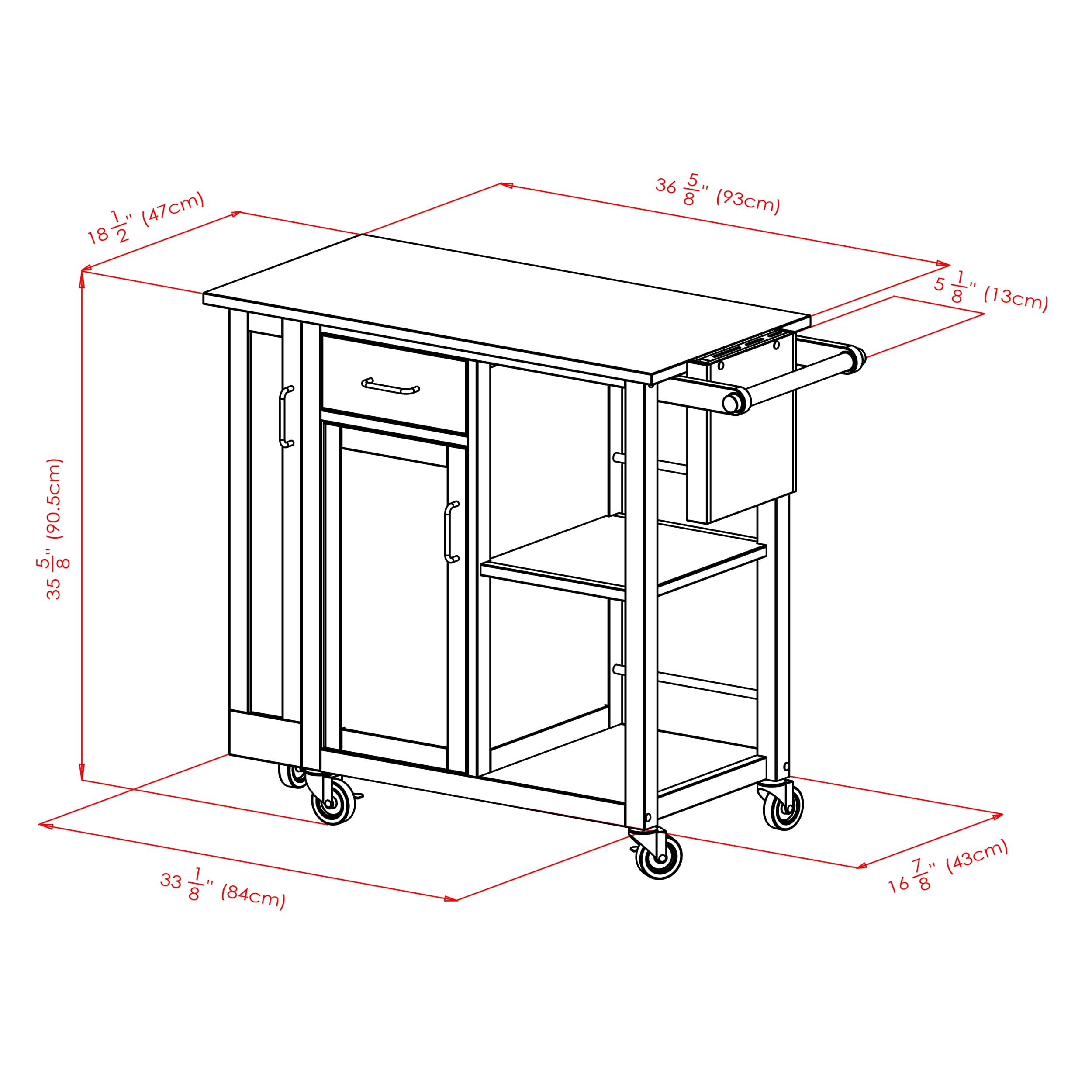 - Cart is compact while still providing ample space for preparing food and storing kitchen essentials in one place. Perfect for small spaces
