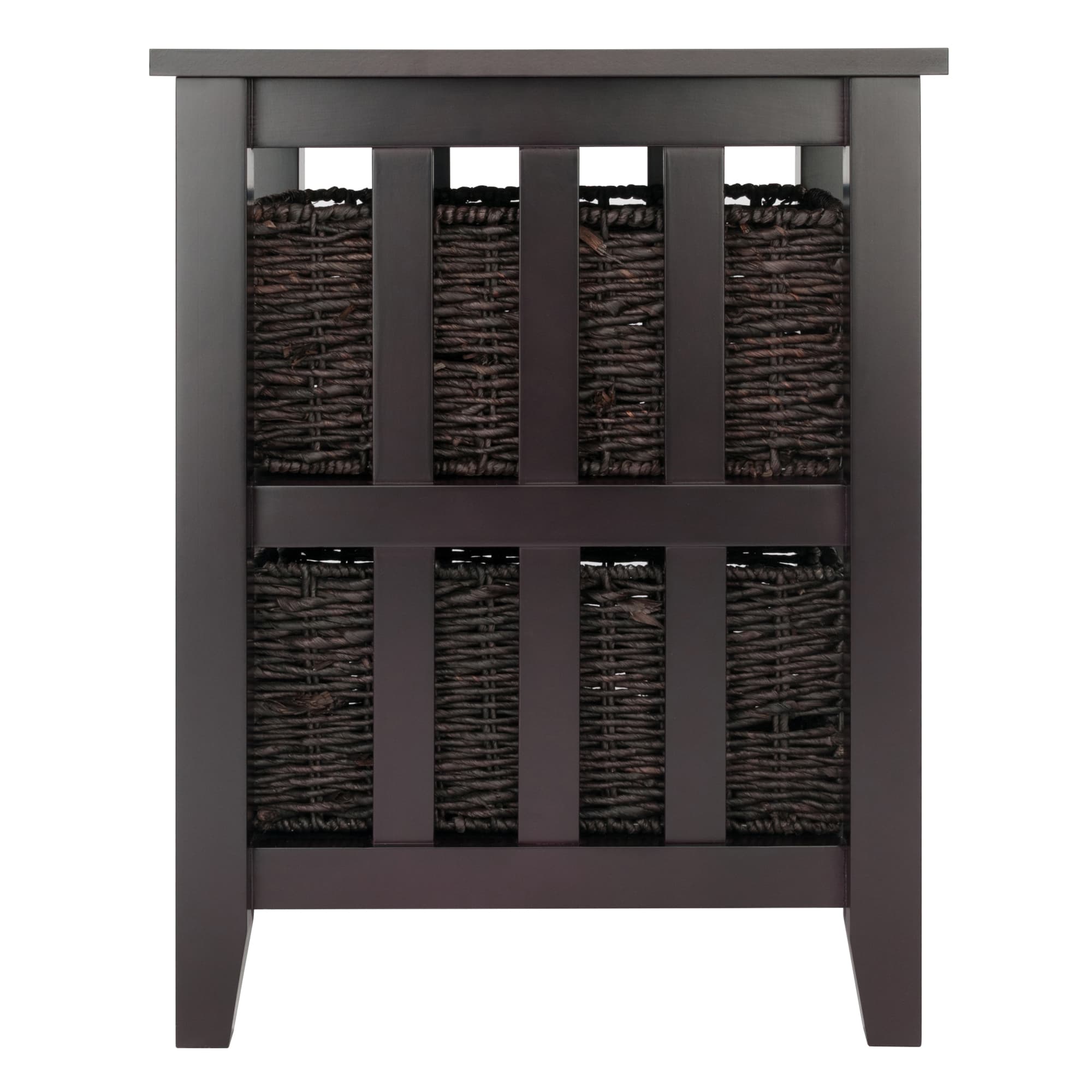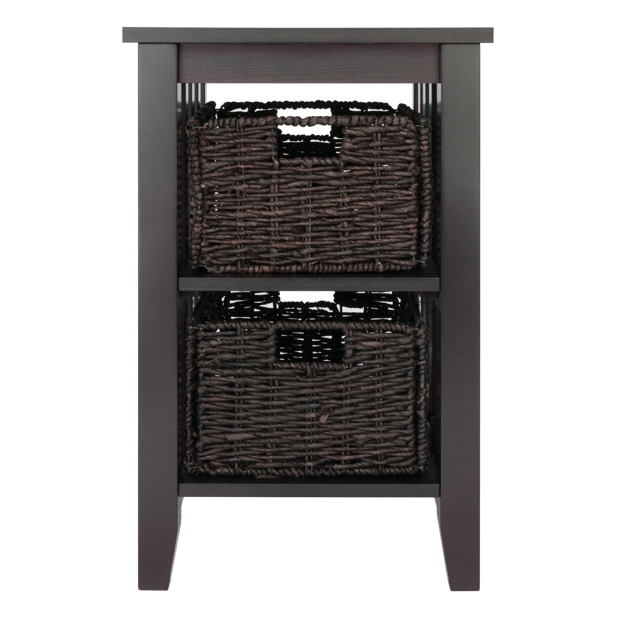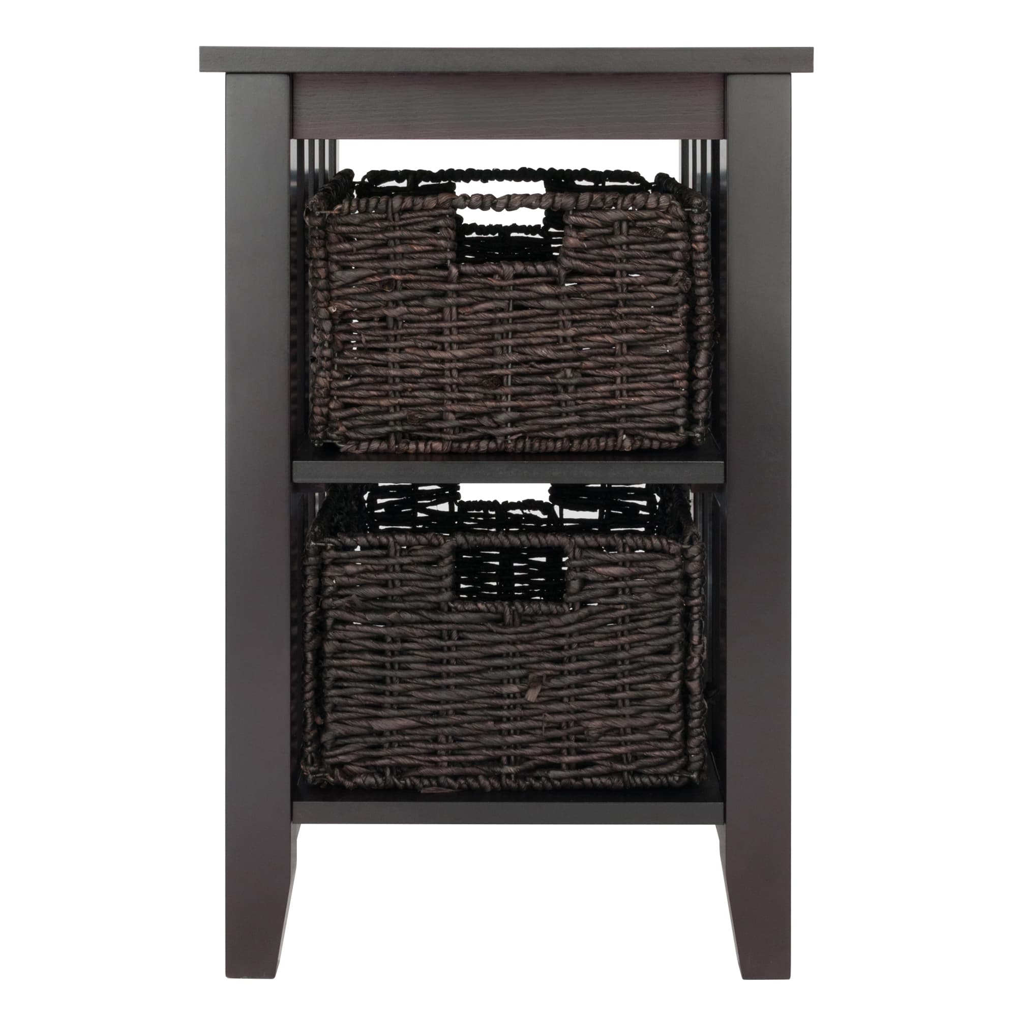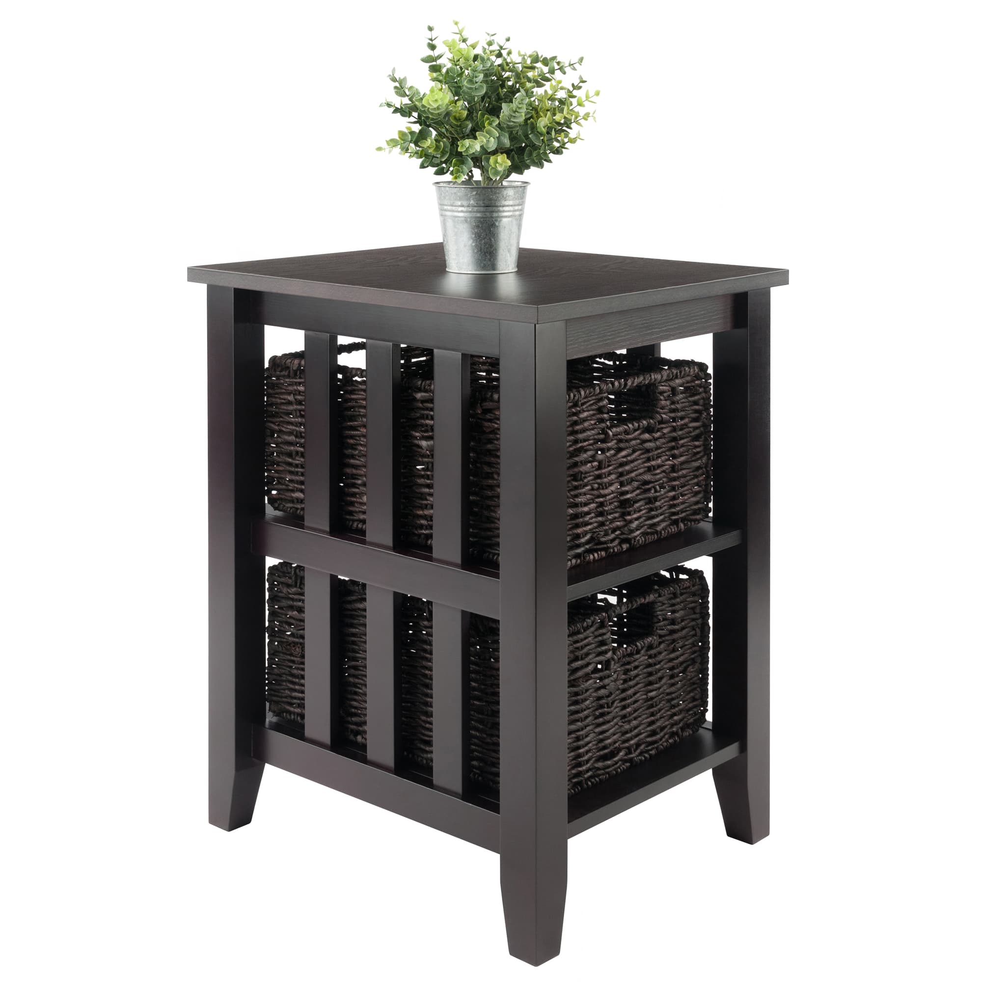 Morris Accent Table with 2 Foldable Corn Husk Baskets, Espresso and Chocolate