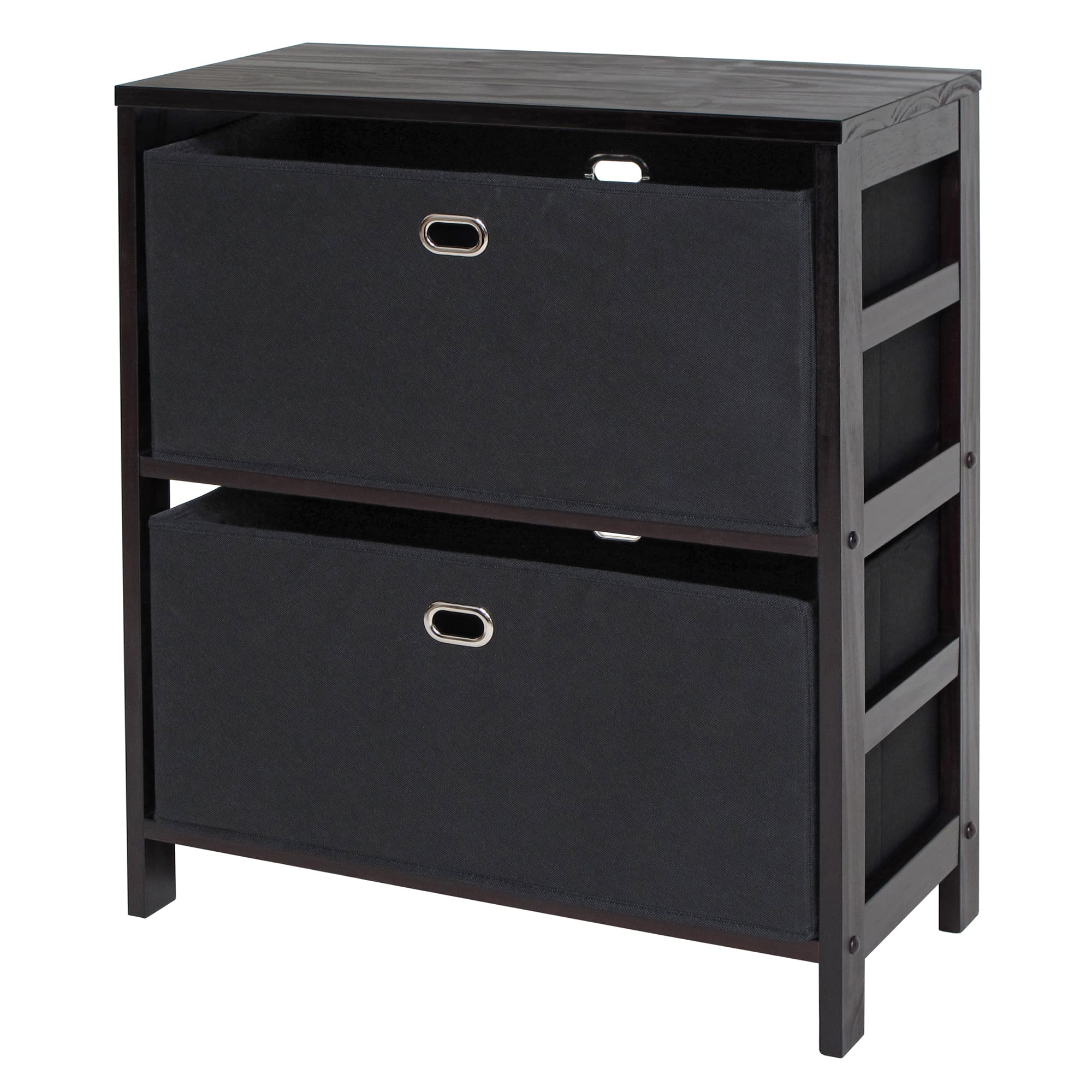 Torino 3-Pc Storage Shelf with 2 Foldable Fabric Baskets, Espresso and Black