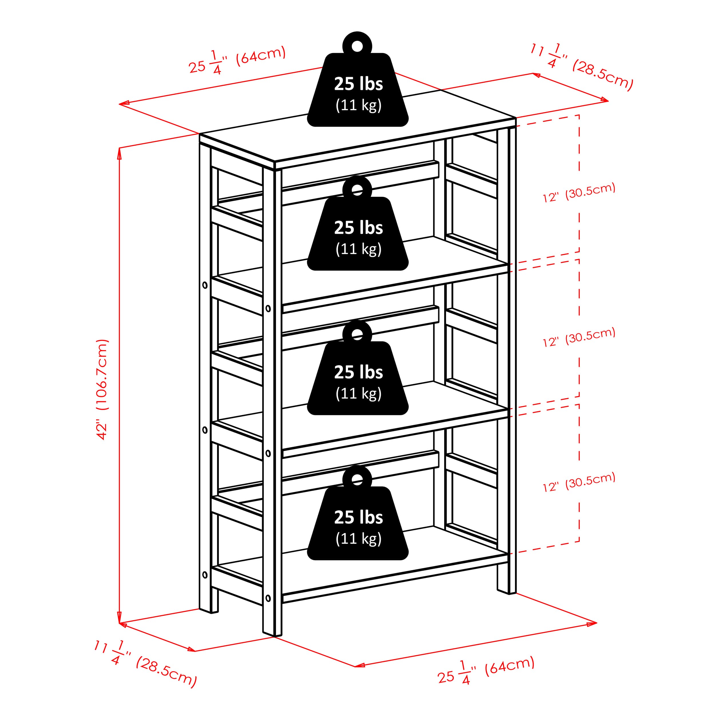 - Dimensions (W x D x H): Shelf - 25.2 x 11.22 x 42 inchesBasket - 23.03 x 10.24 x 10.24 inches