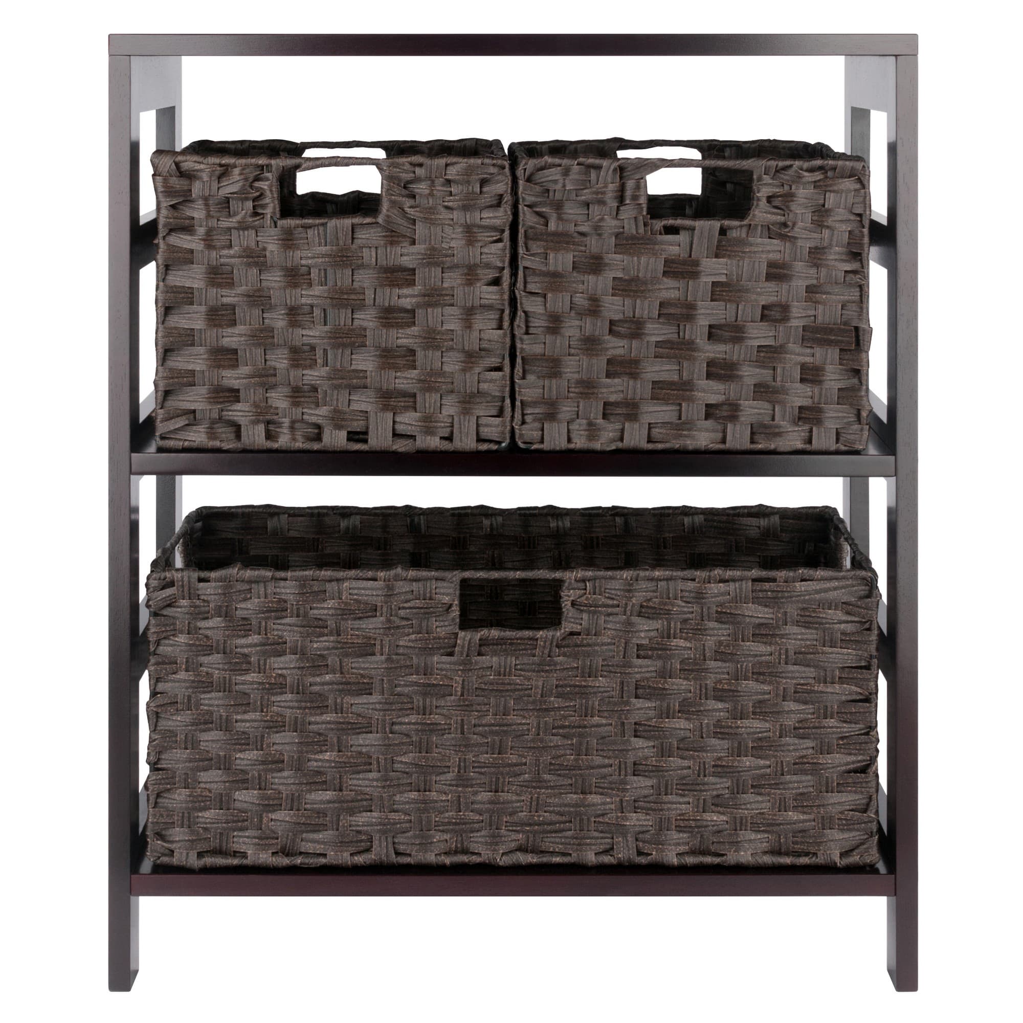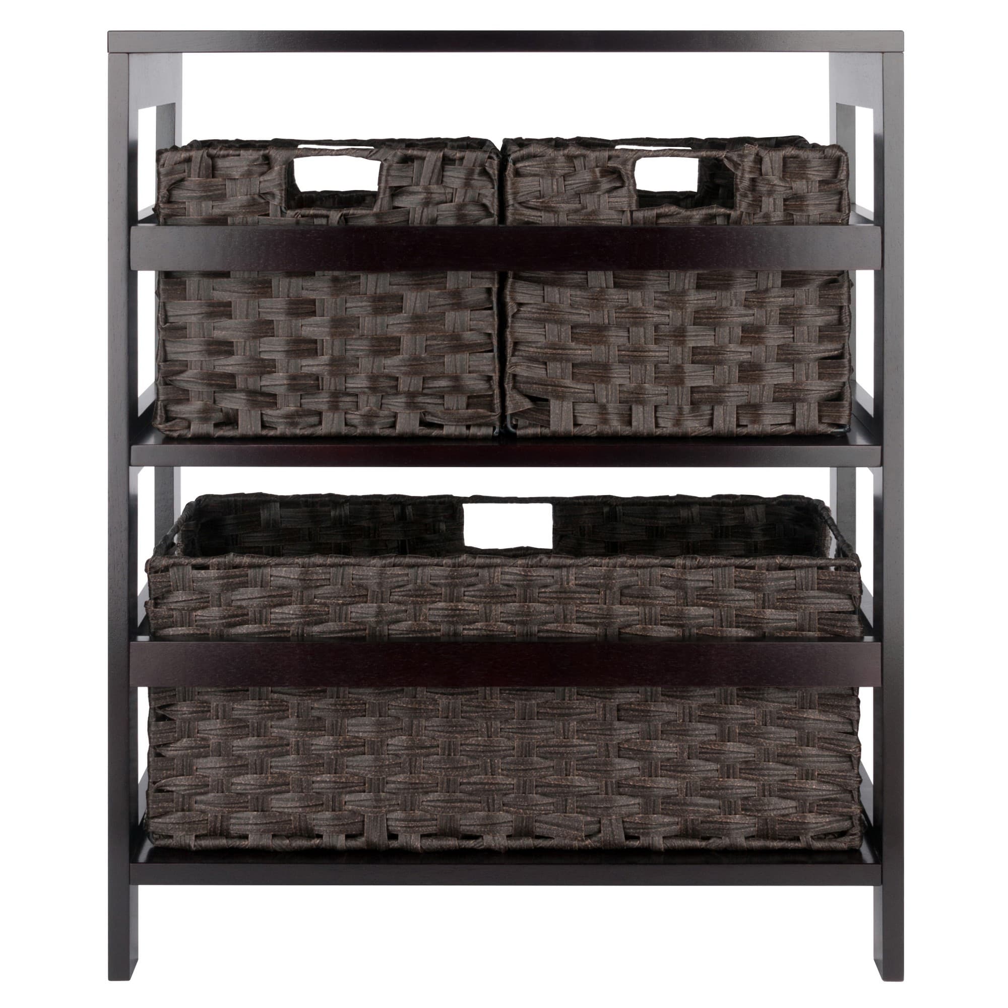 Leo 4-Pc Storage Shelf with 3 Foldable Woven Baskets, Espresso and Chocolate