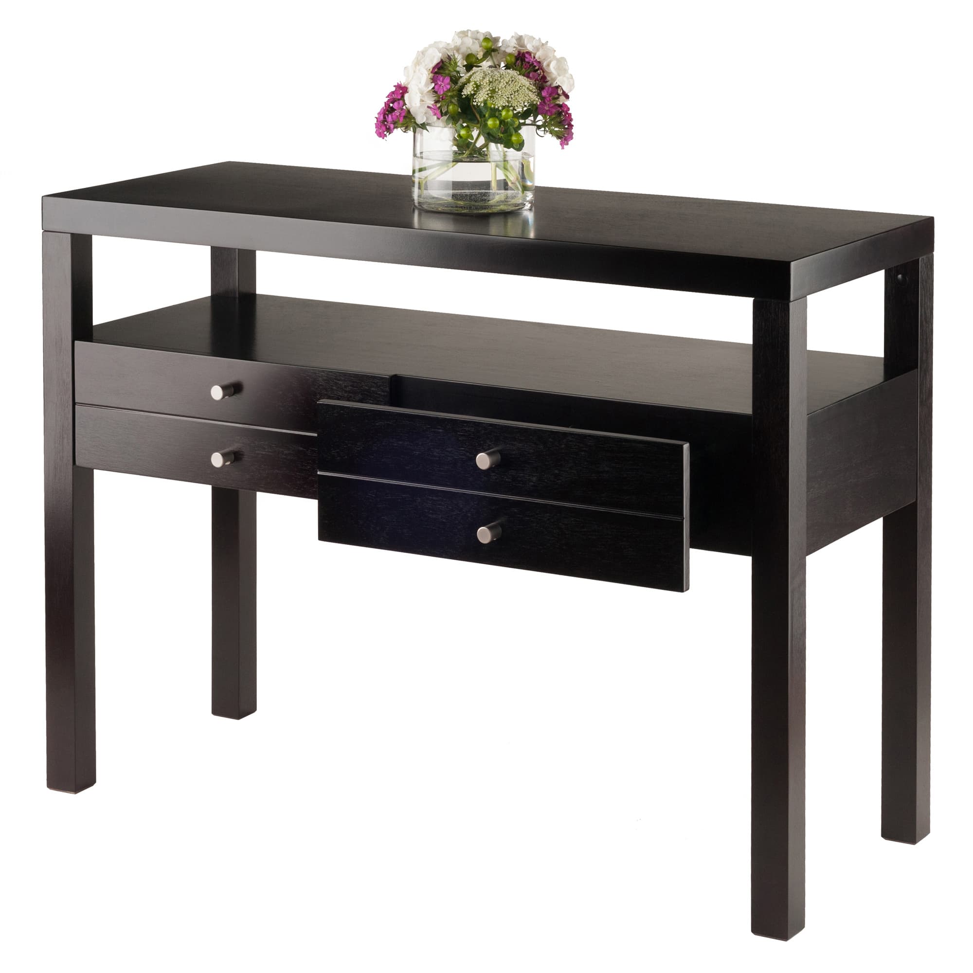 - Minimalist Scandinavian design and espresso finish blend well with almost any decor