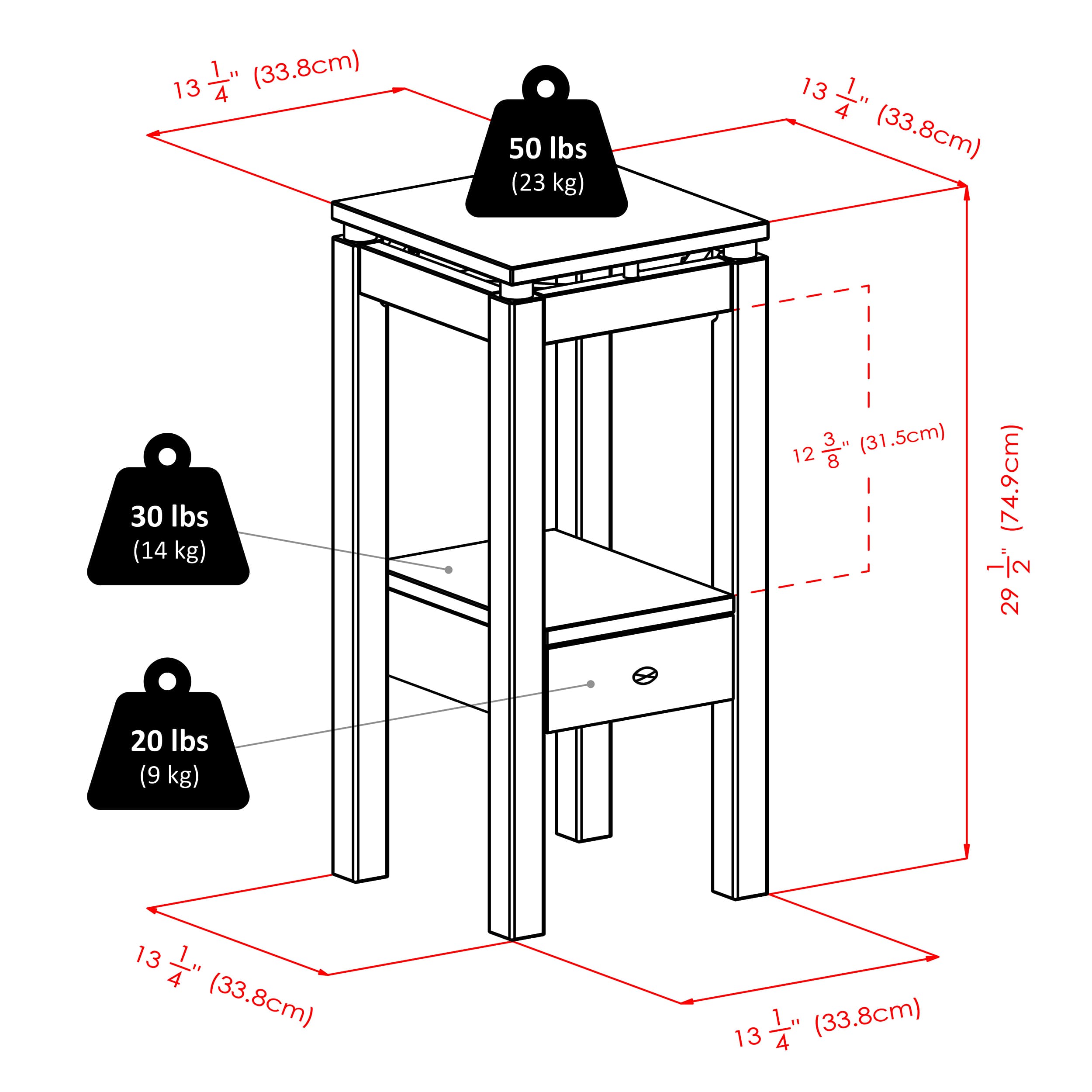 - Dimensions (W x D x H): 13.31 x 13.31 x 29.49 inches