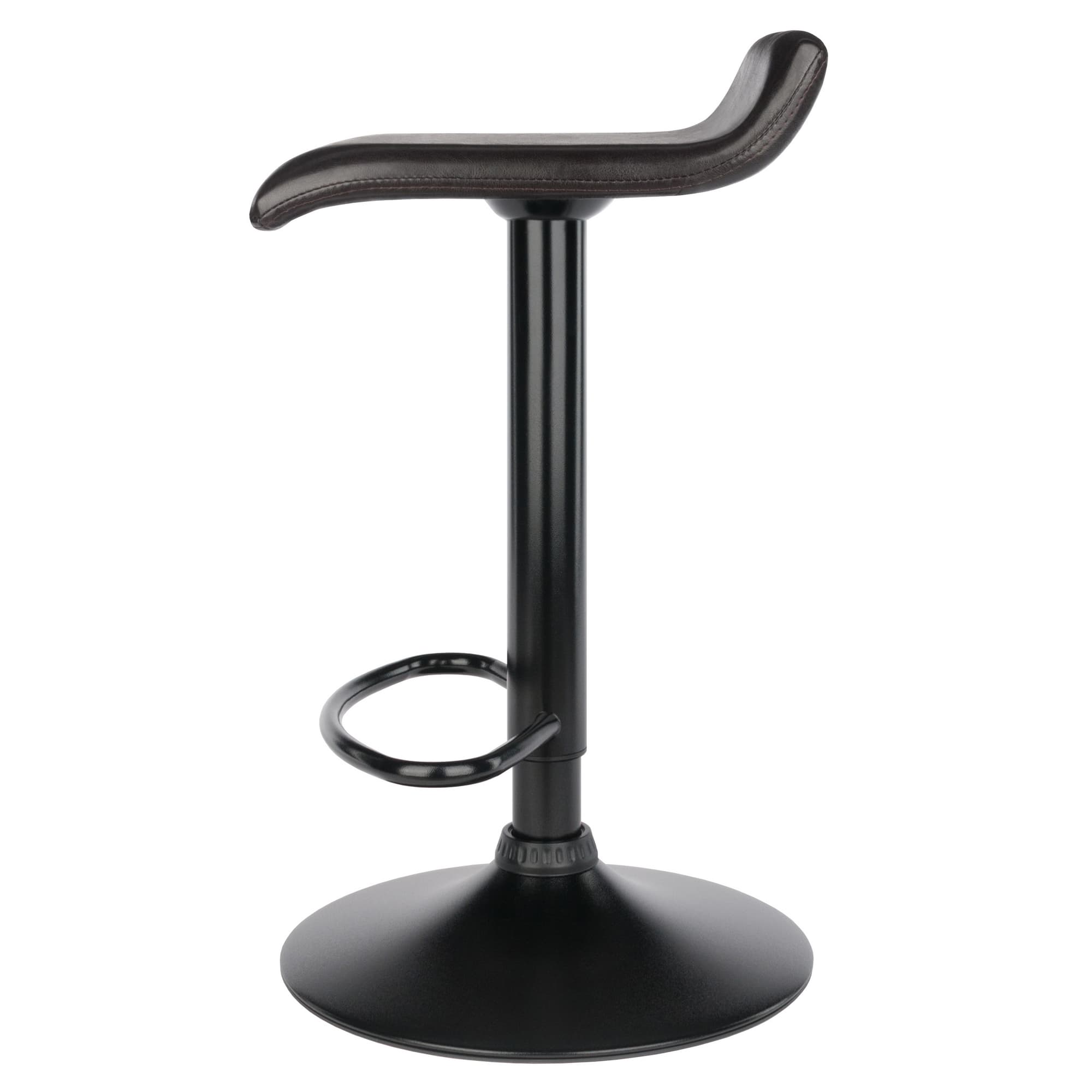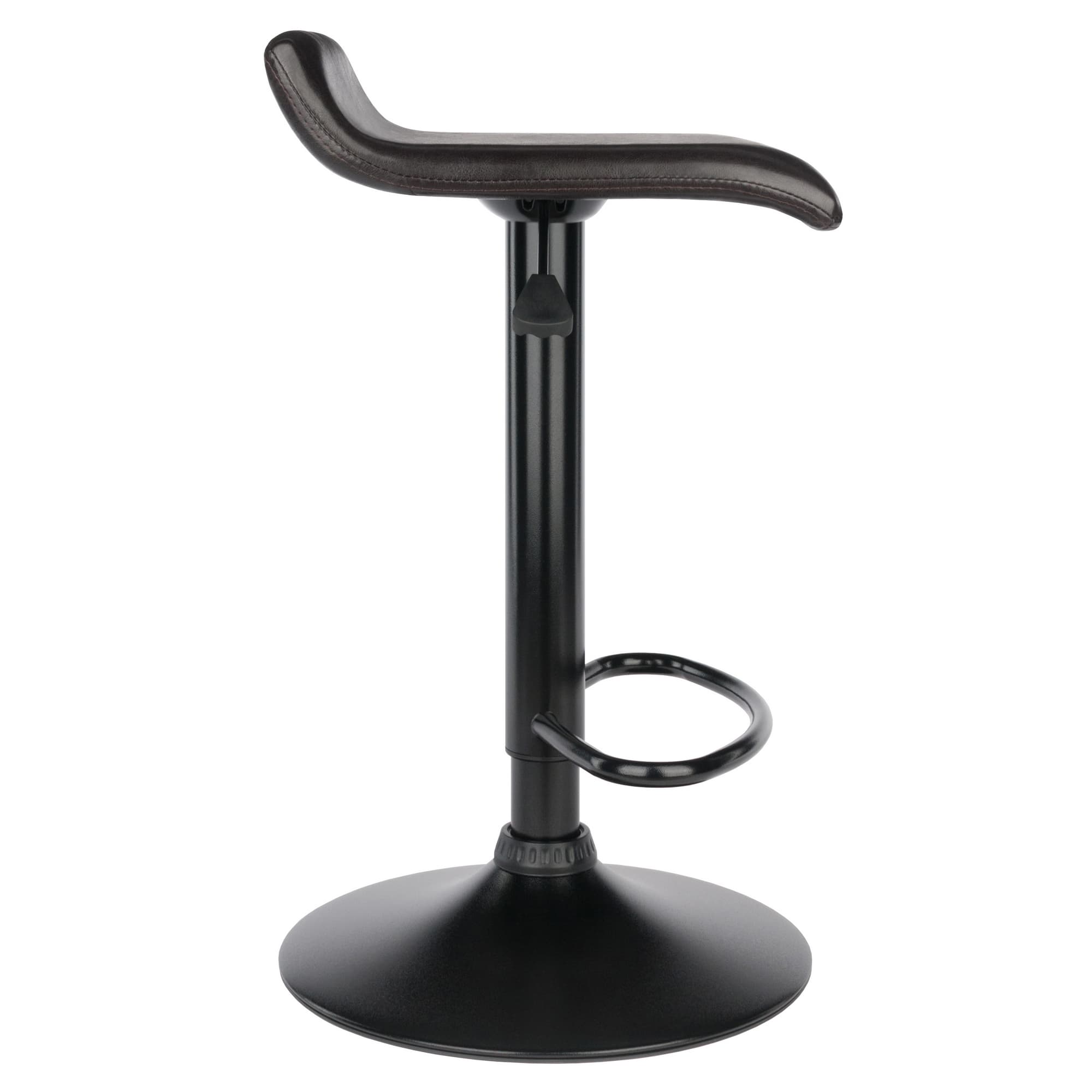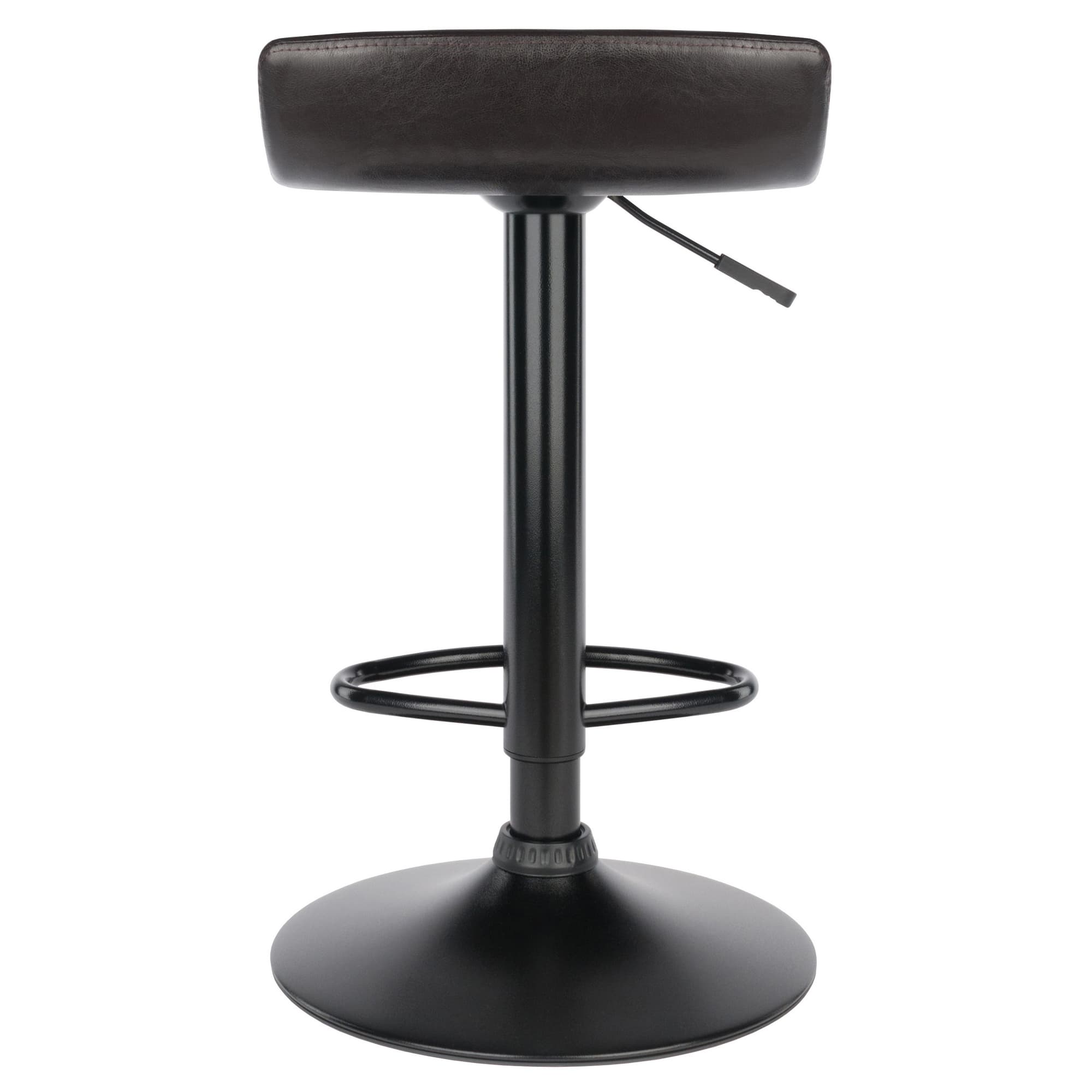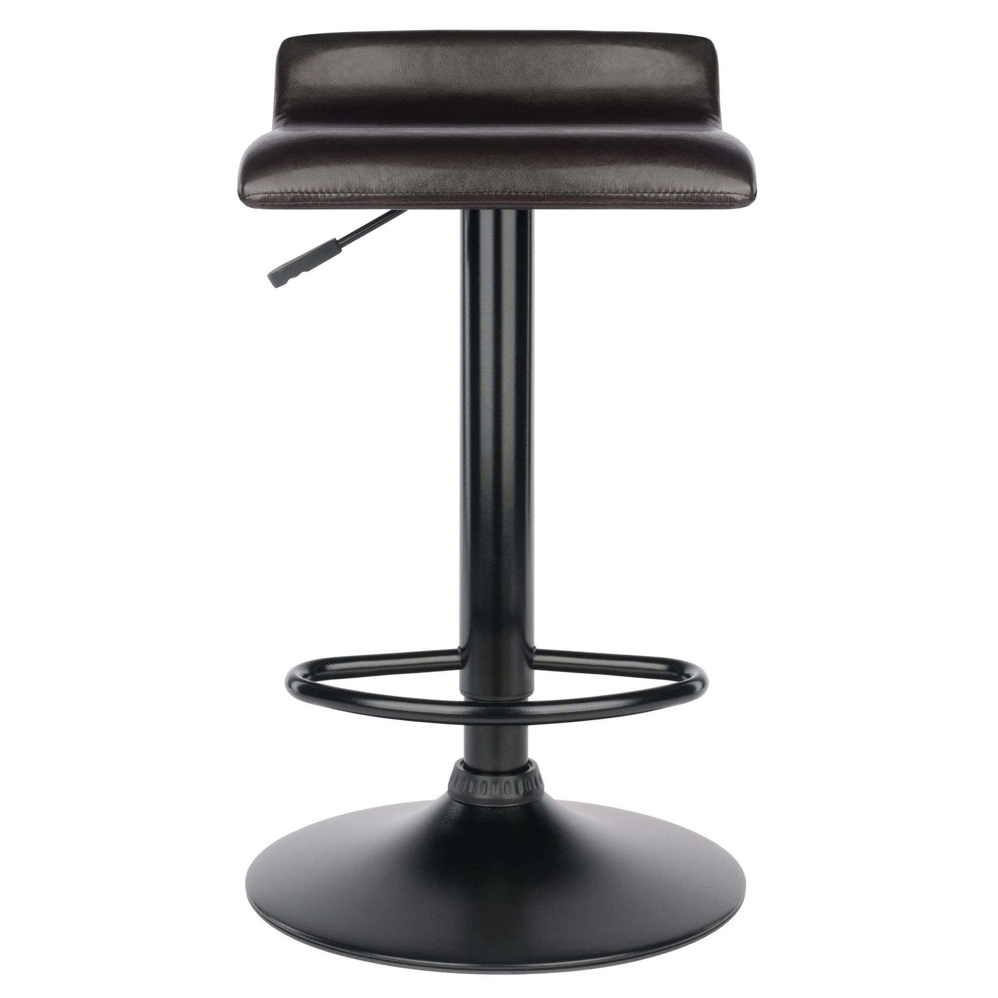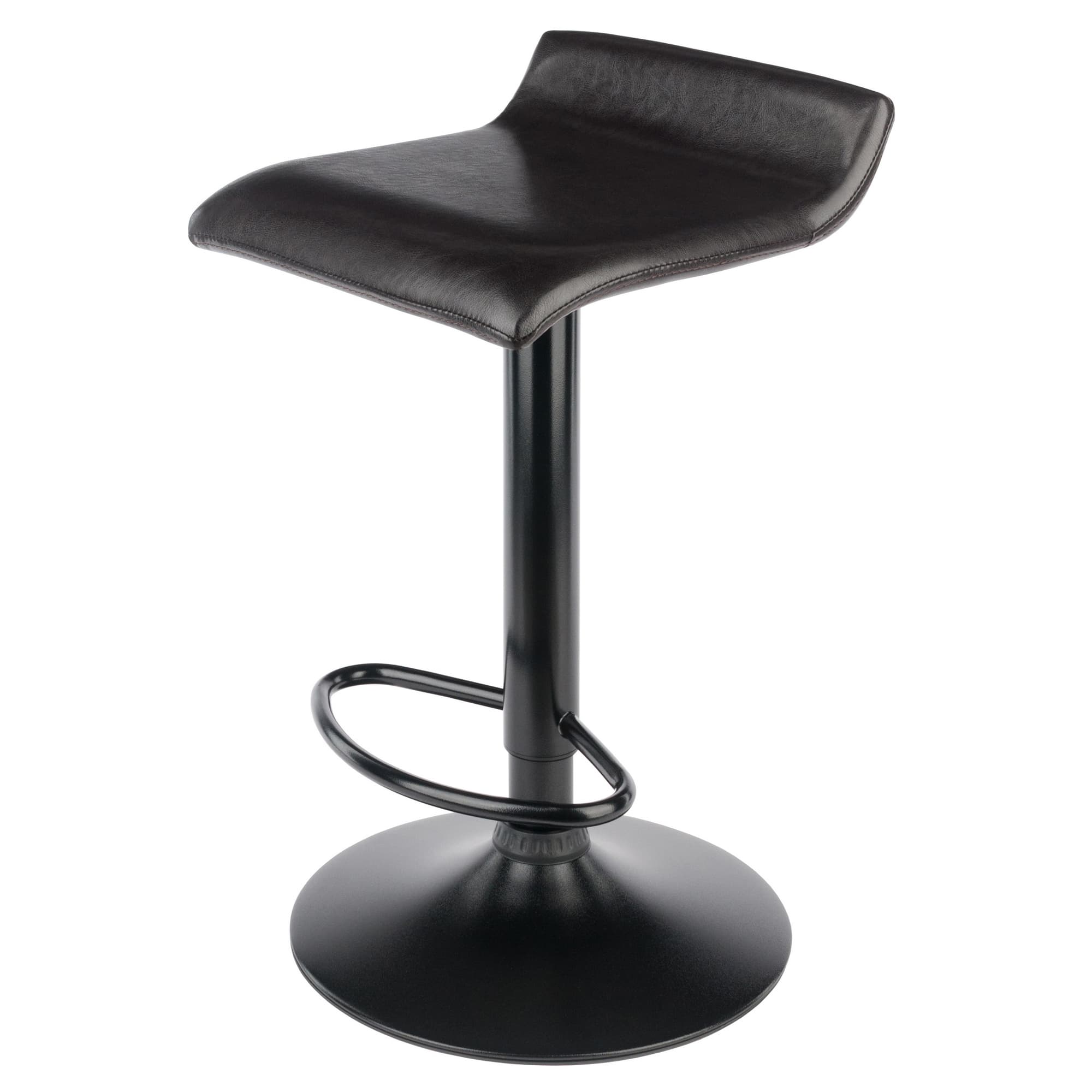 - Sleek, black faux leather seat and black metal base showcase a modern look while providing unit stability