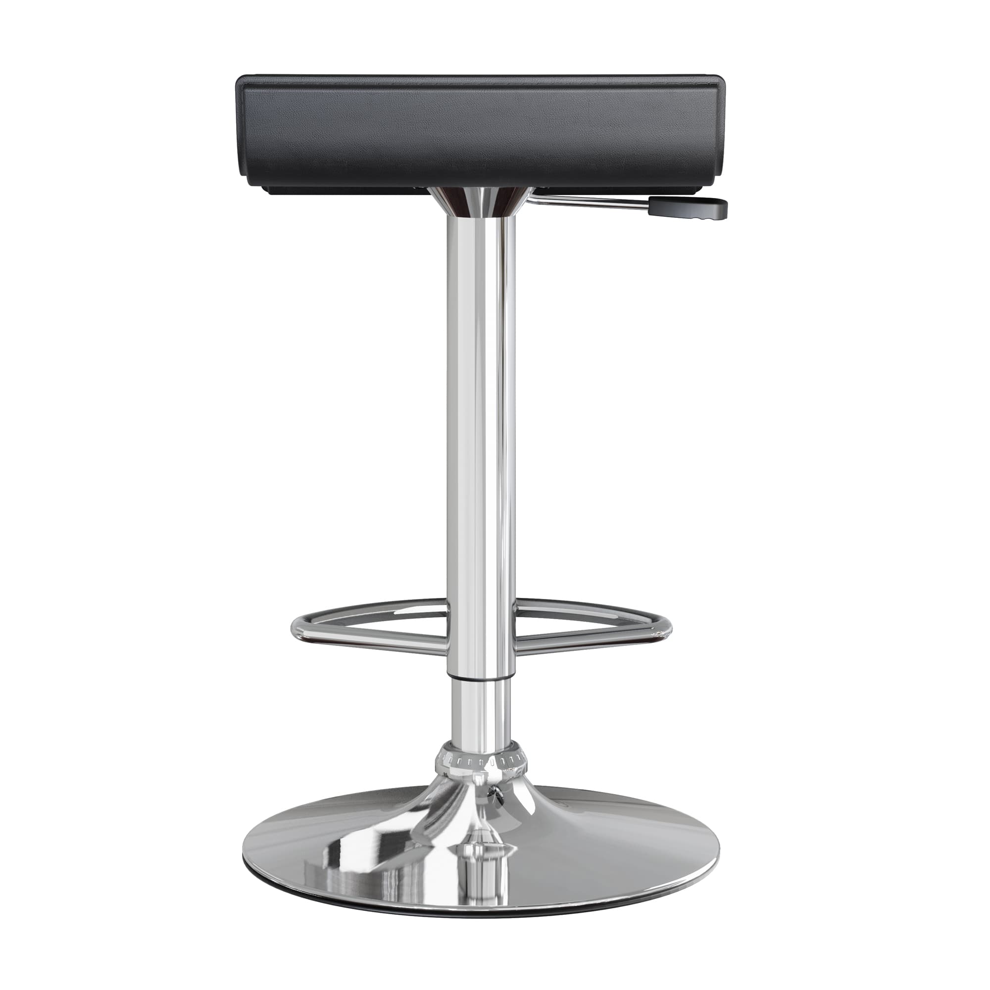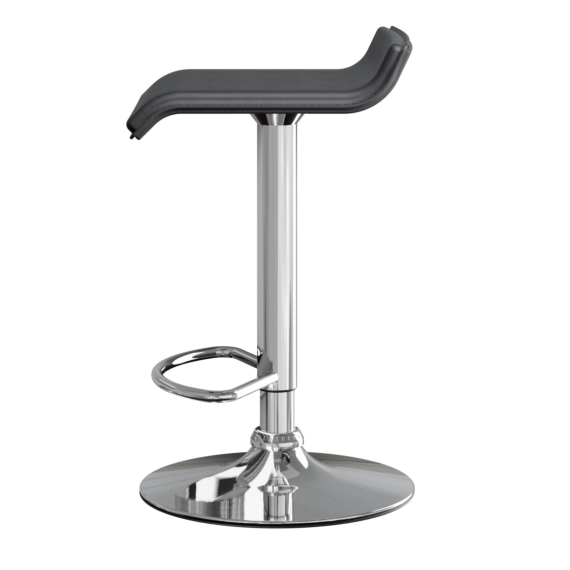 - Black PVC seat and steel base showcase a modern look while providing stability