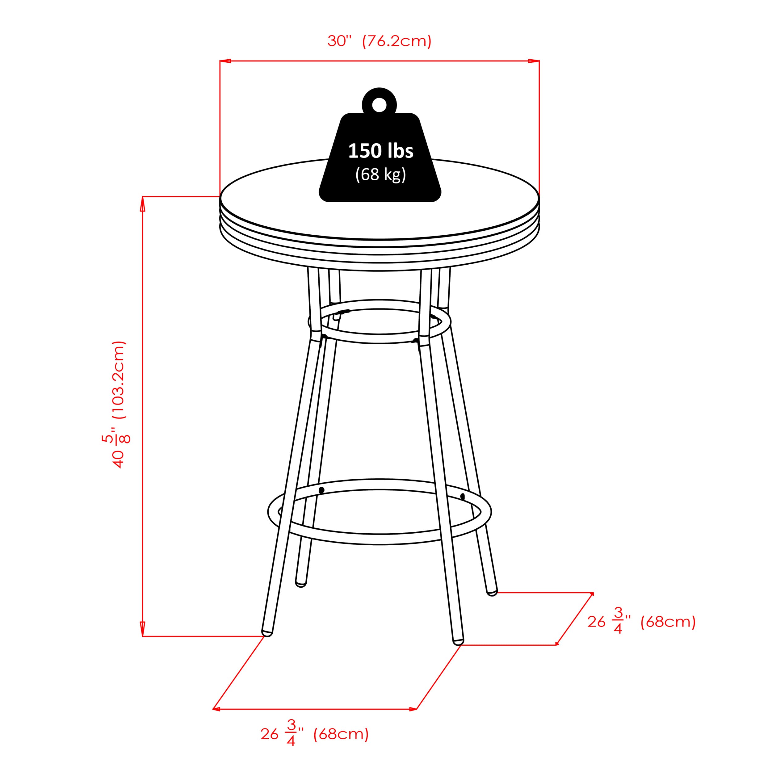 - Dimensions (W x D x H): Table - 30 x 30 x 40.61 inchesStool - 19.69 x 19.69 x 29.13 inches