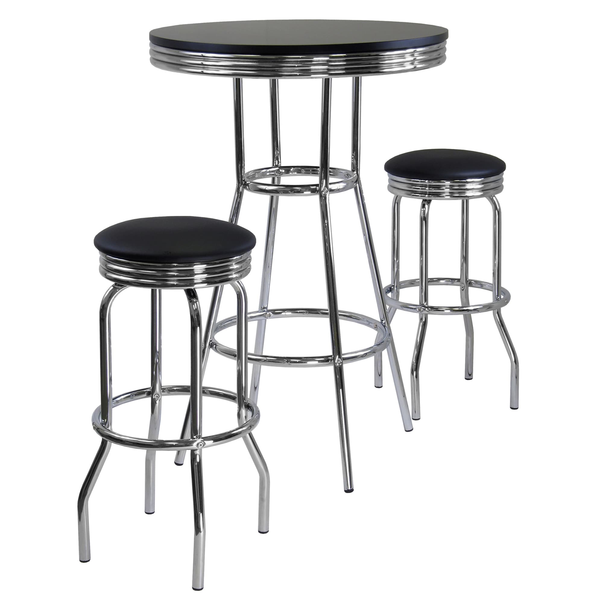 Summit 3-Pc High Table with Swivel Seat Bar Stools, Black and Chrome