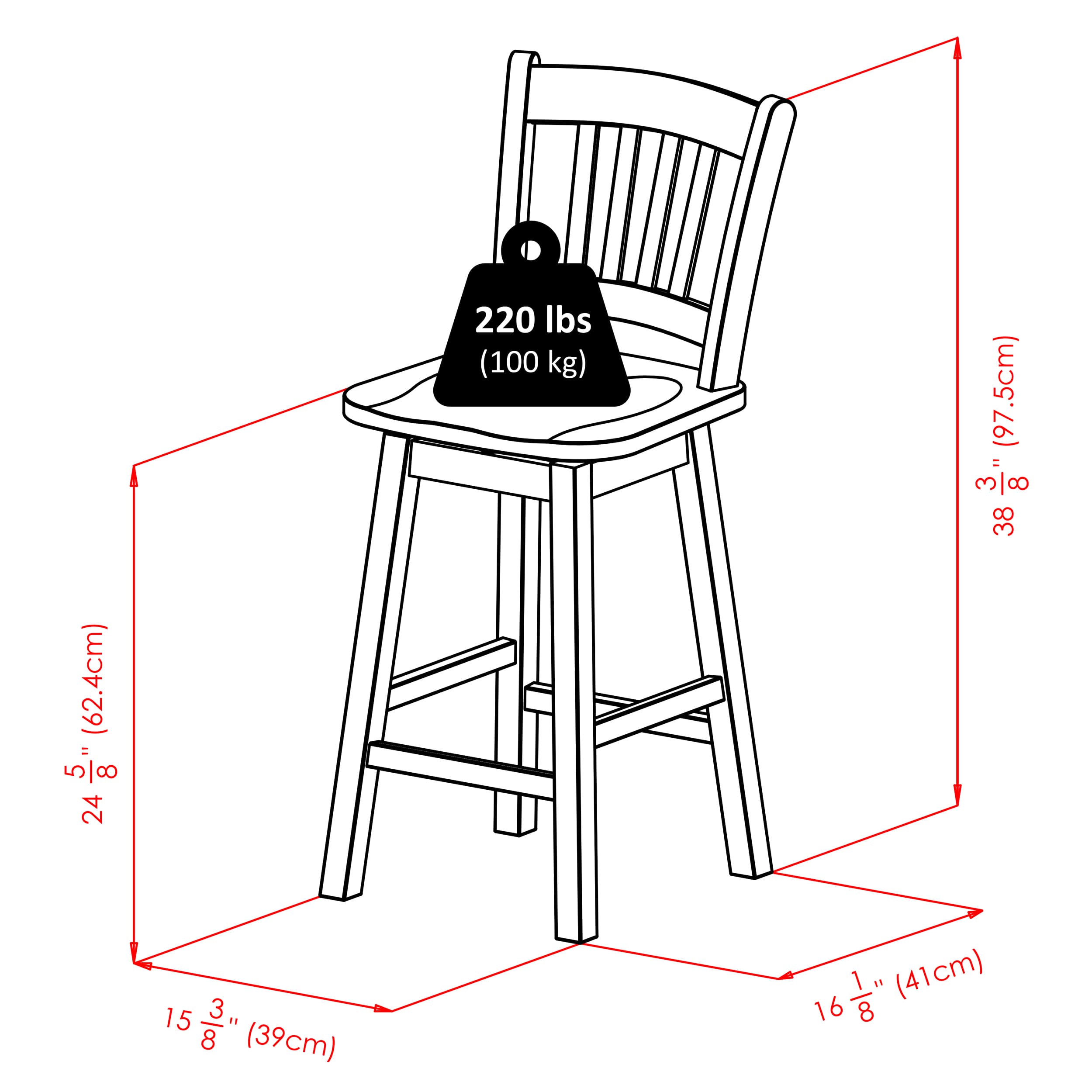 Winsome Fina 360-Swivel Counter Stool with Slat Back and Footrests, 38” High, Walnut